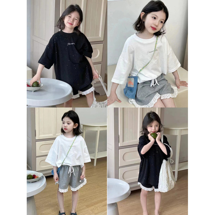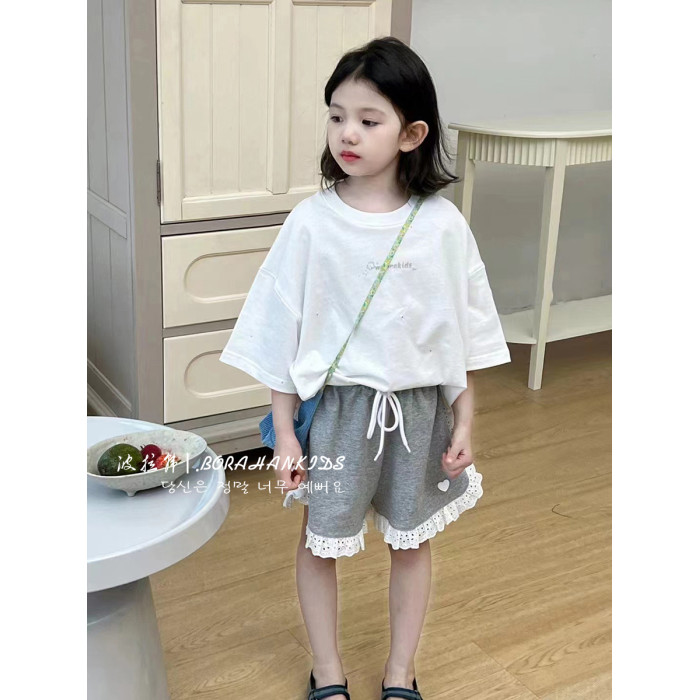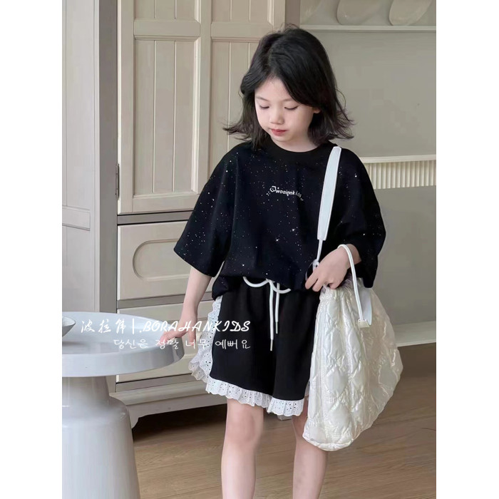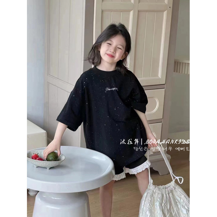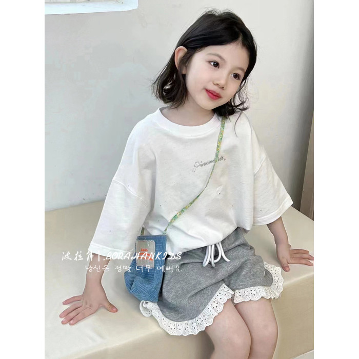 波拉韓女童寬松短袖T恤2025夏季兒童休閒洋氣上衣小女孩套頭半袖t