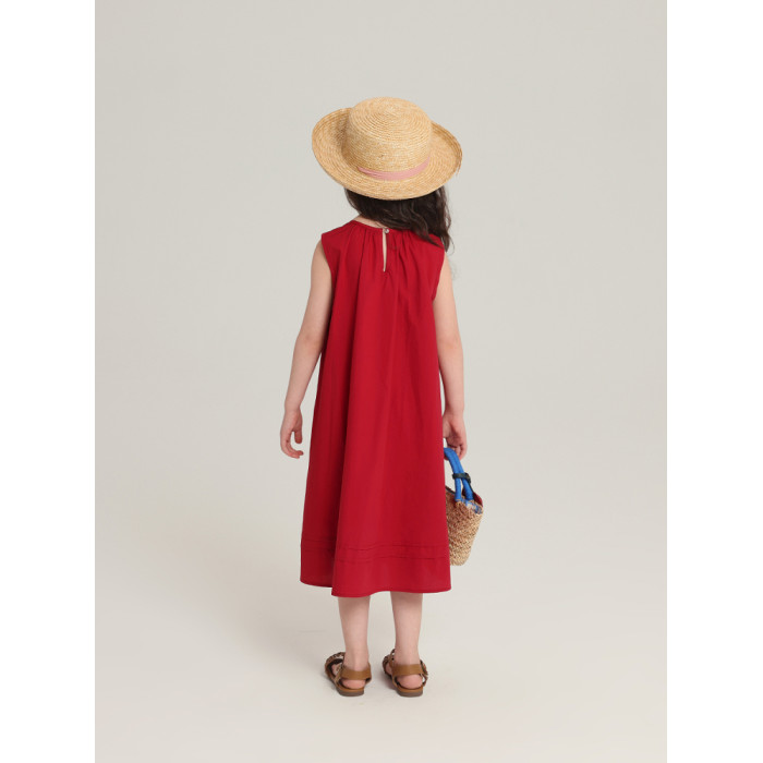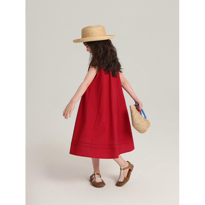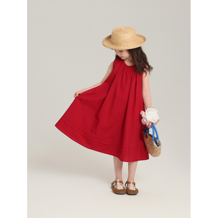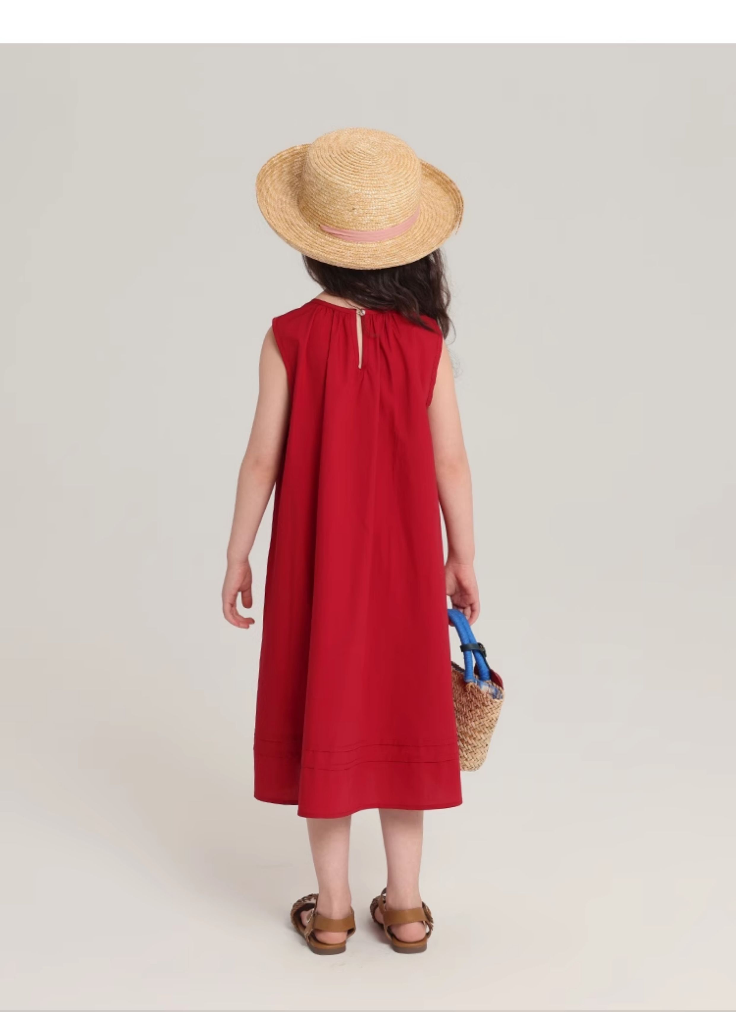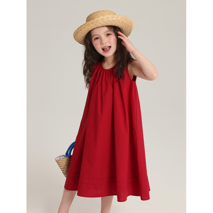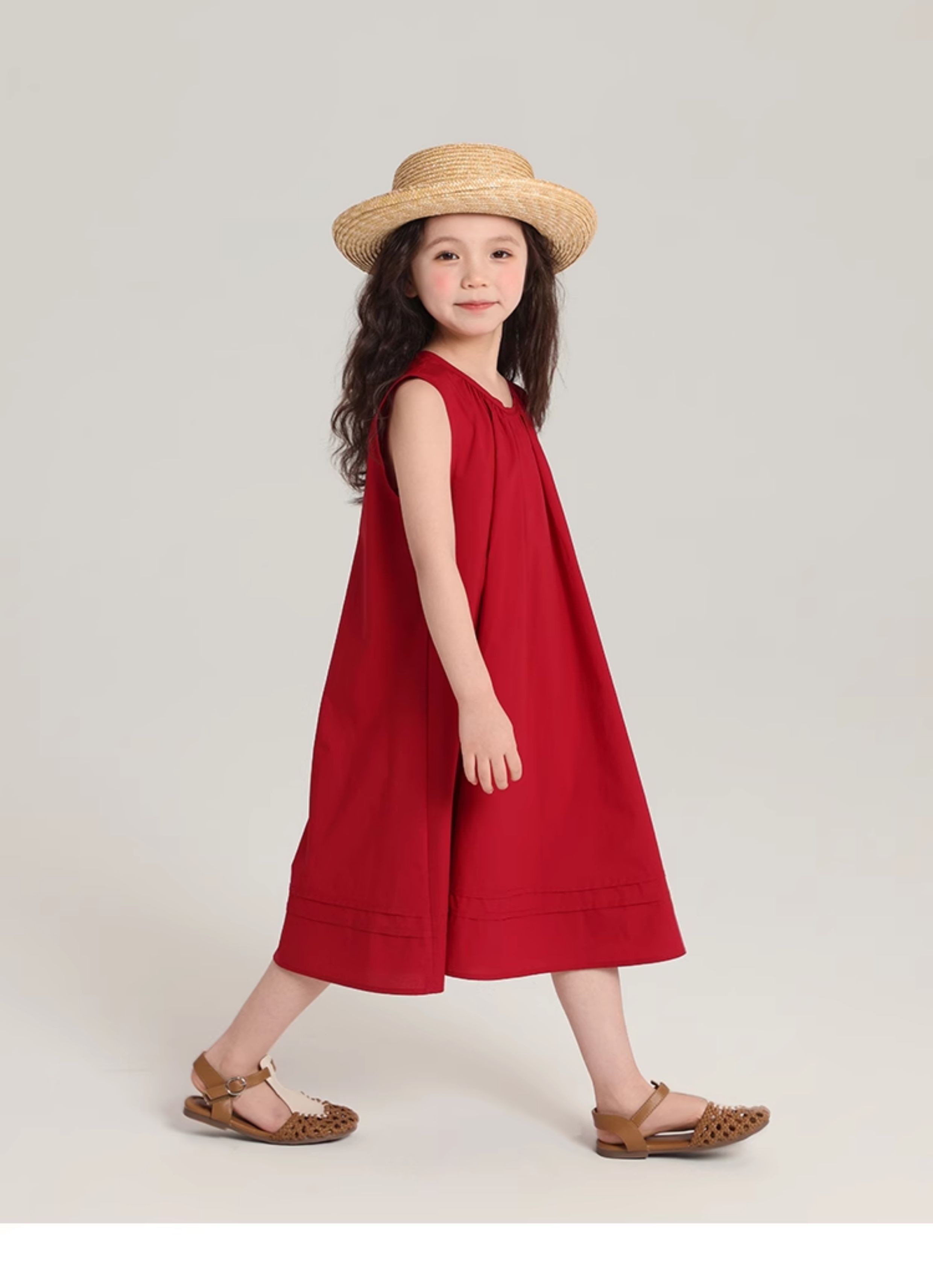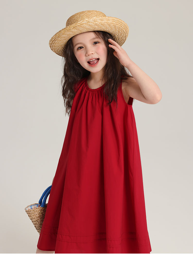 布丁哈魯童裝女童2025夏季新款中大兒童百搭洋氣紅色公主連衣裙子