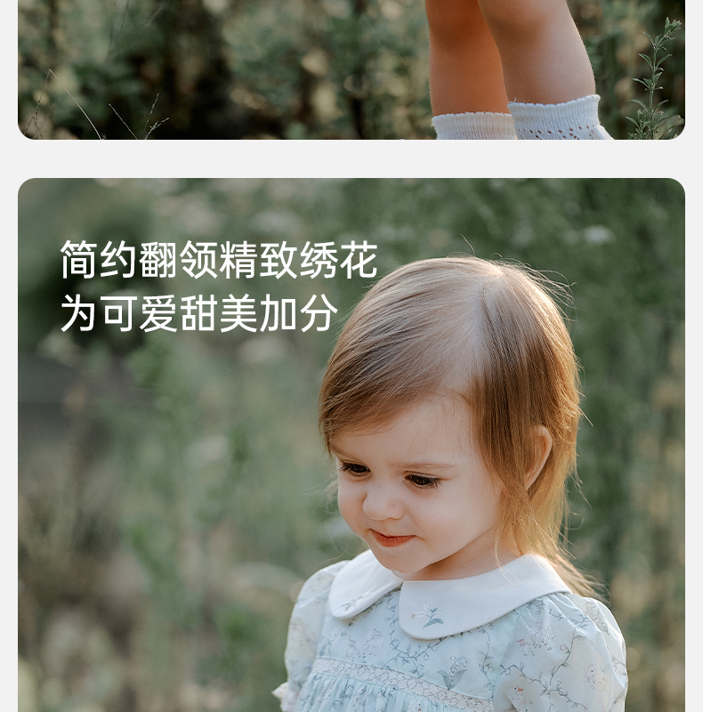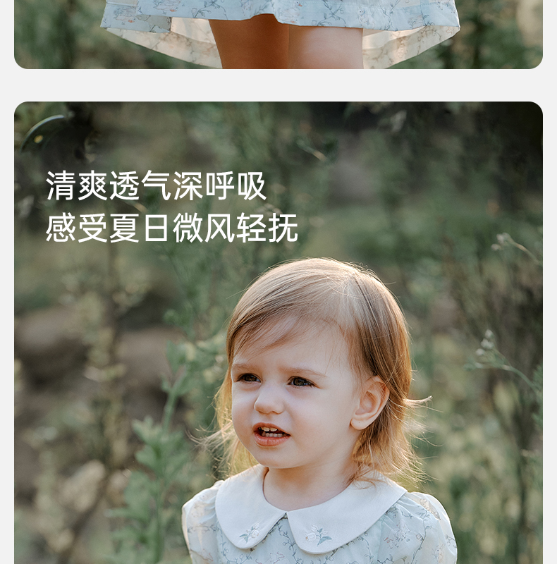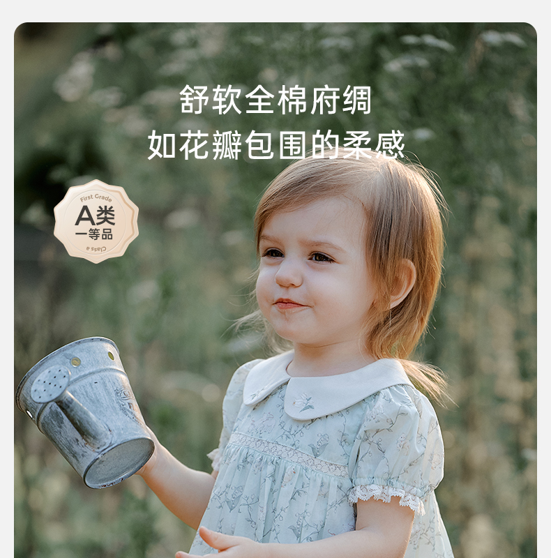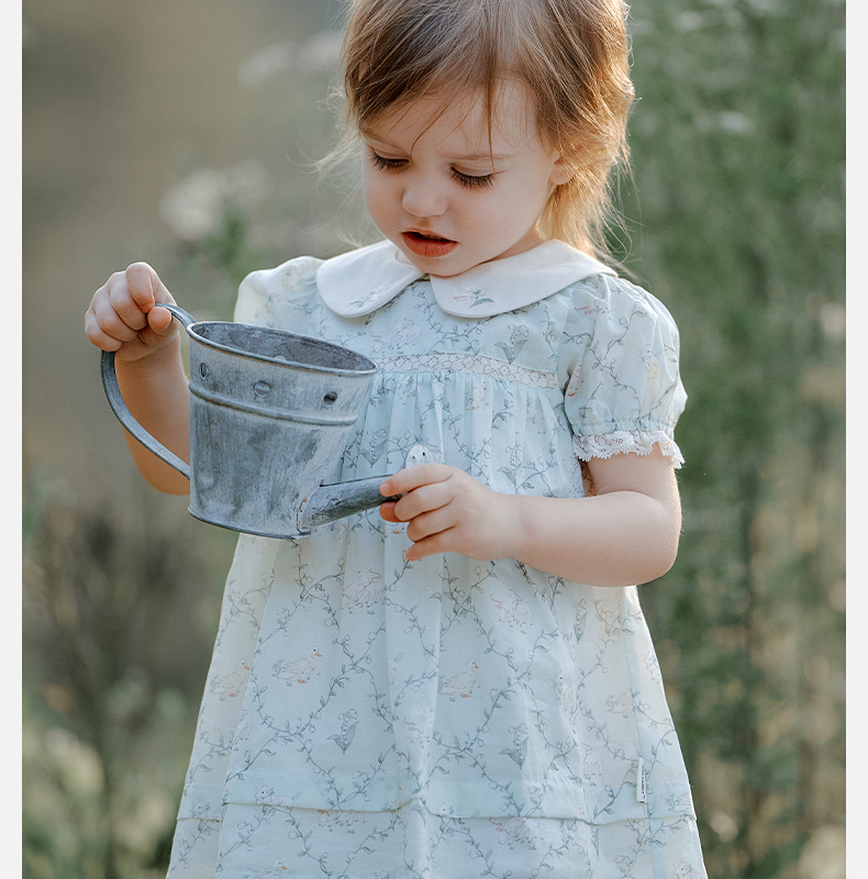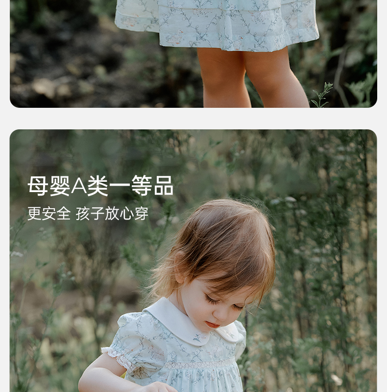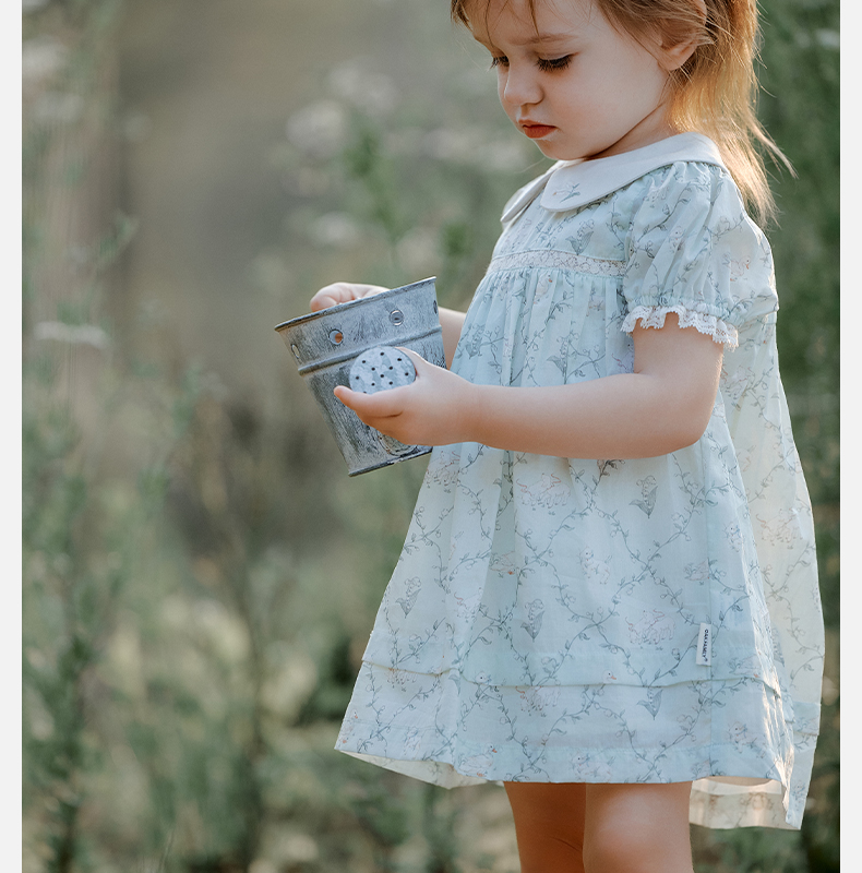 Oak Family夏季新品女童短袖連衣裙法式泡泡袖全棉府綢寶寶裙子