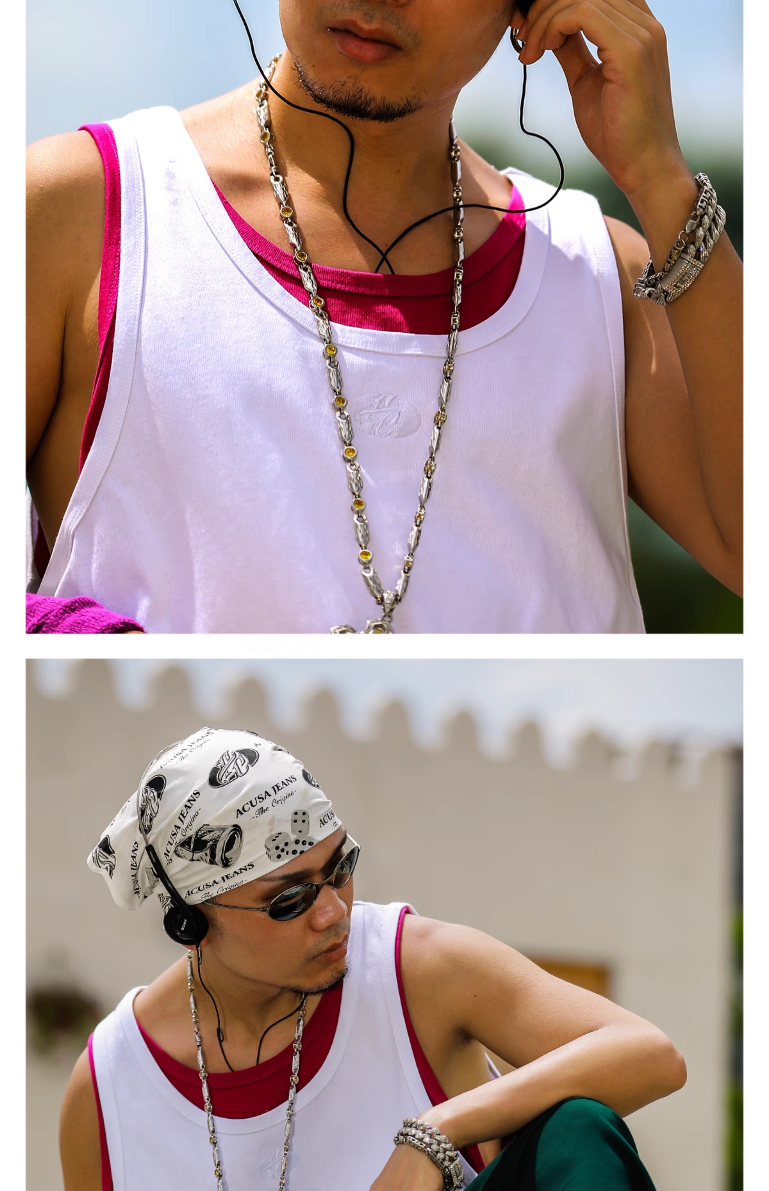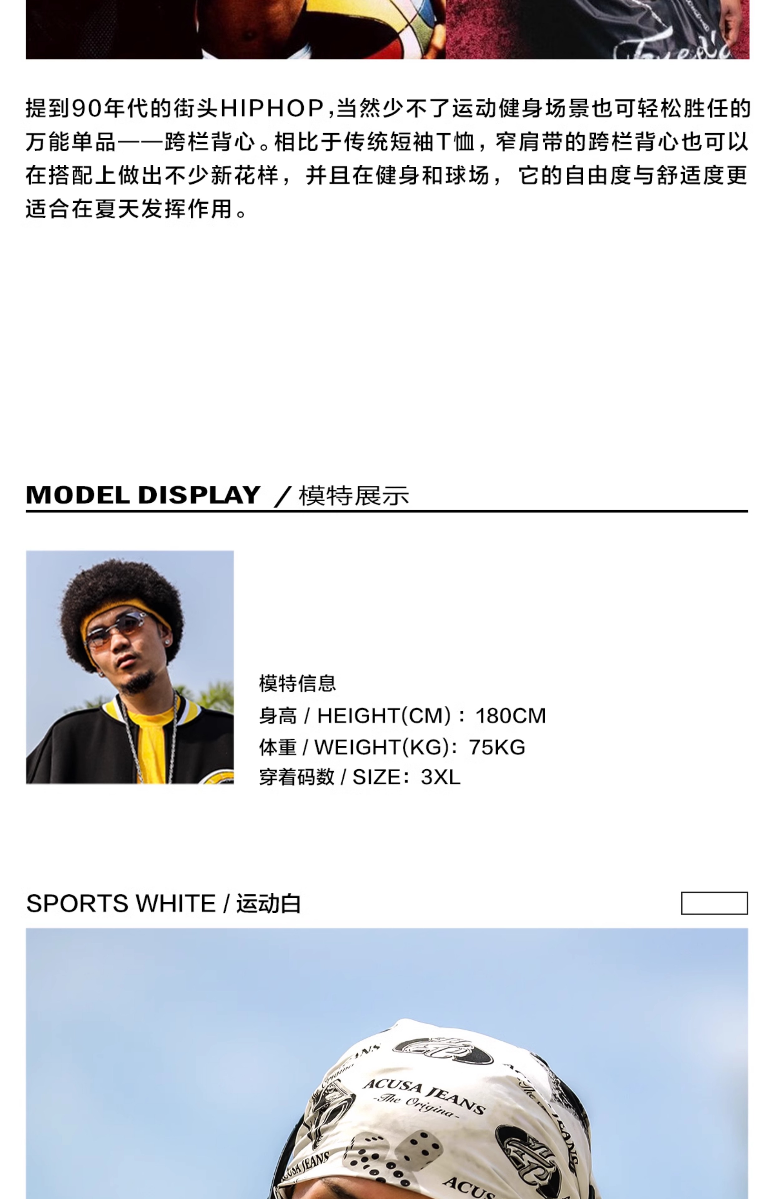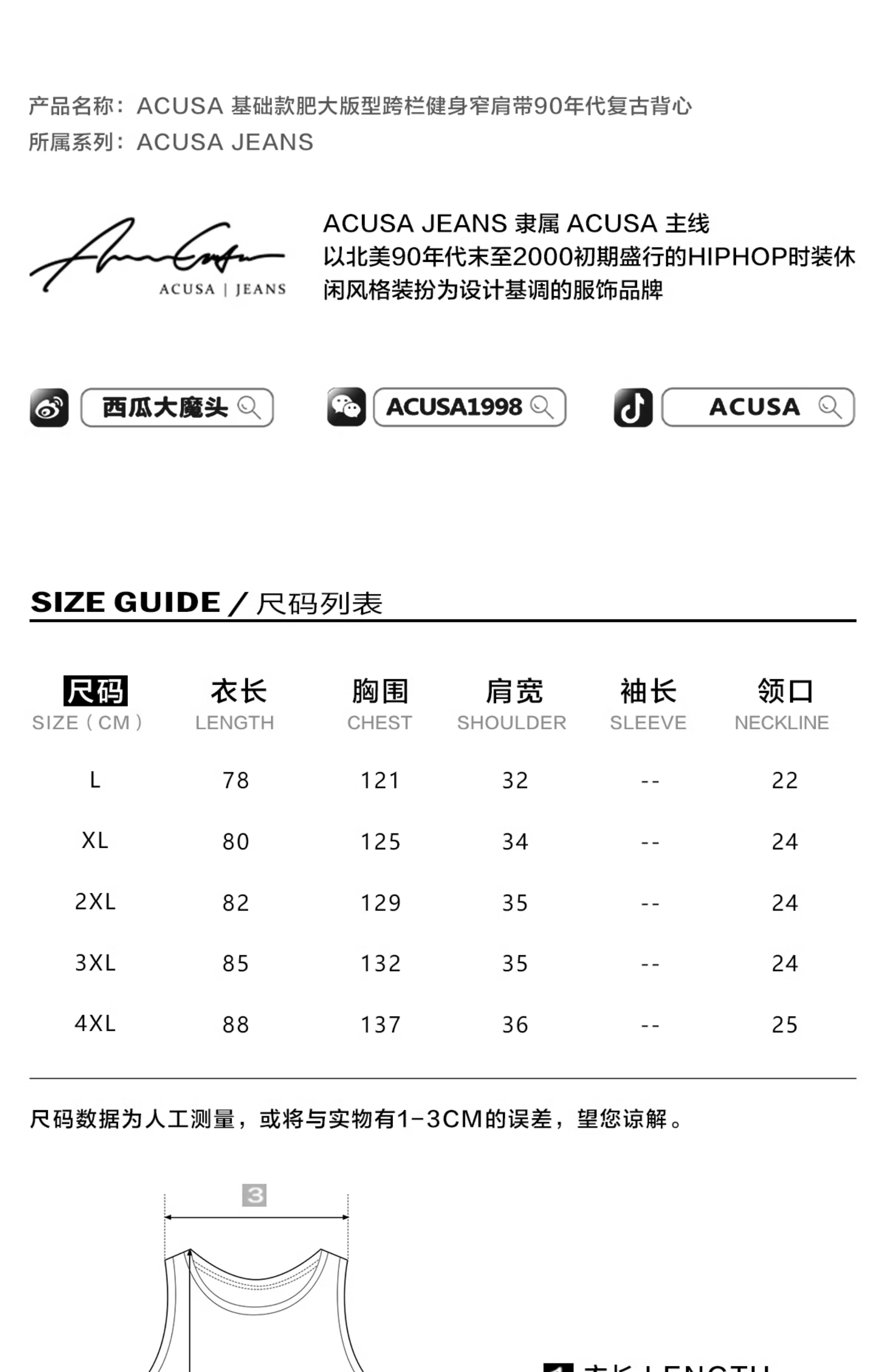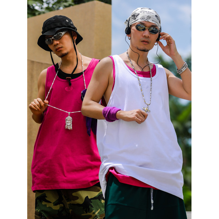Acusa美式街頭嘻哈基礎款肥大版型跨欄背心健身窄肩帶90s復古夏季