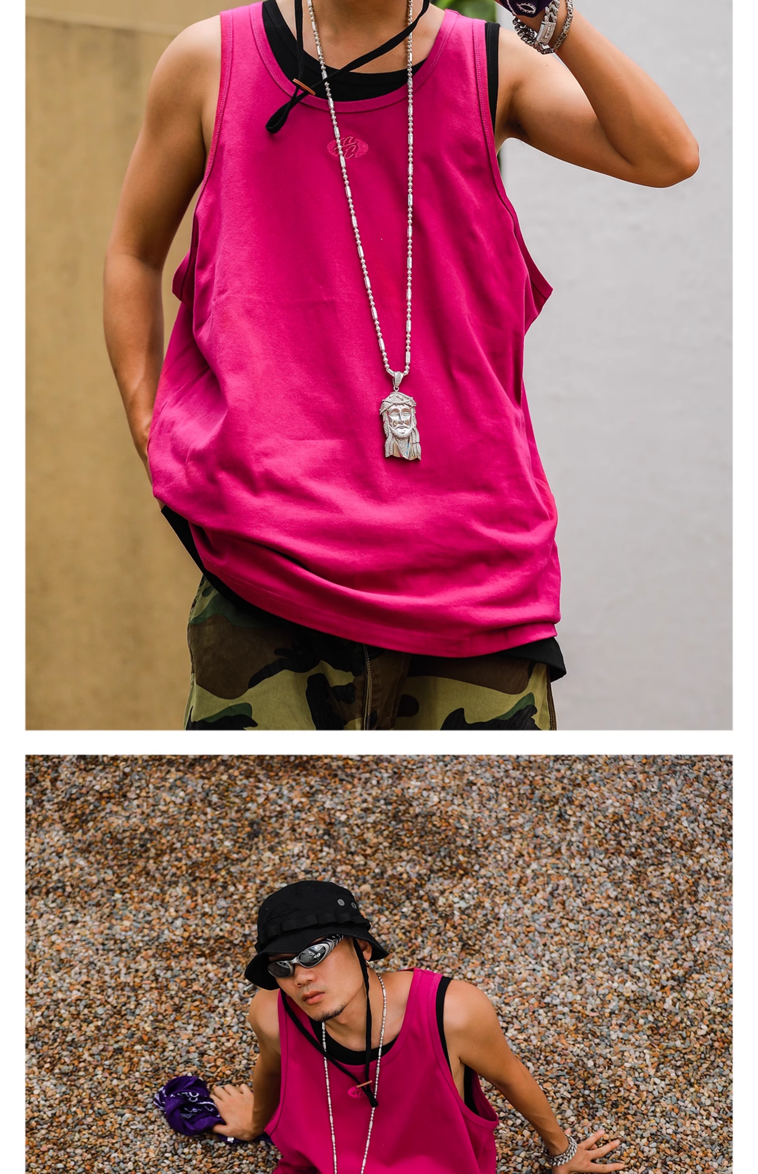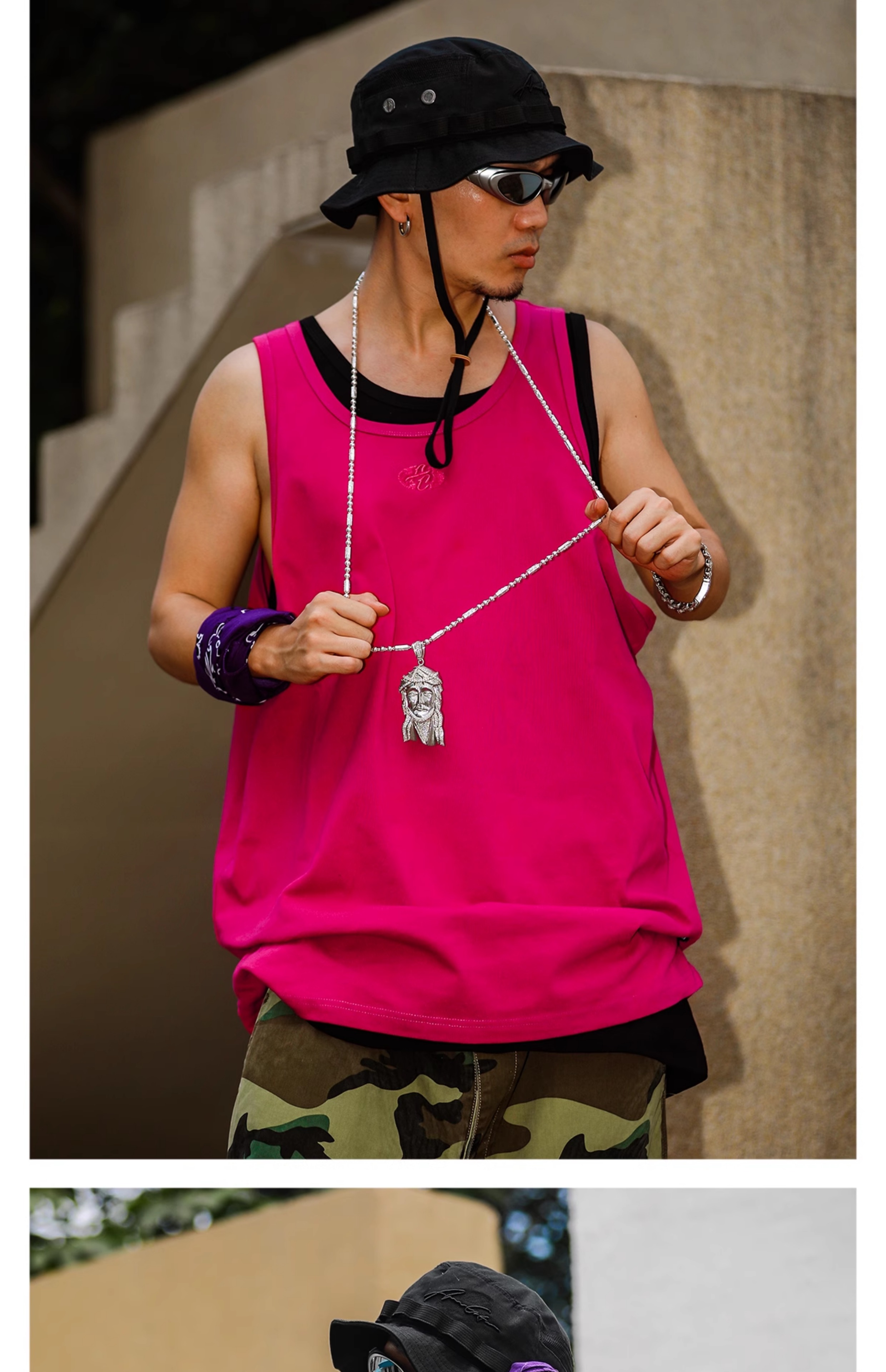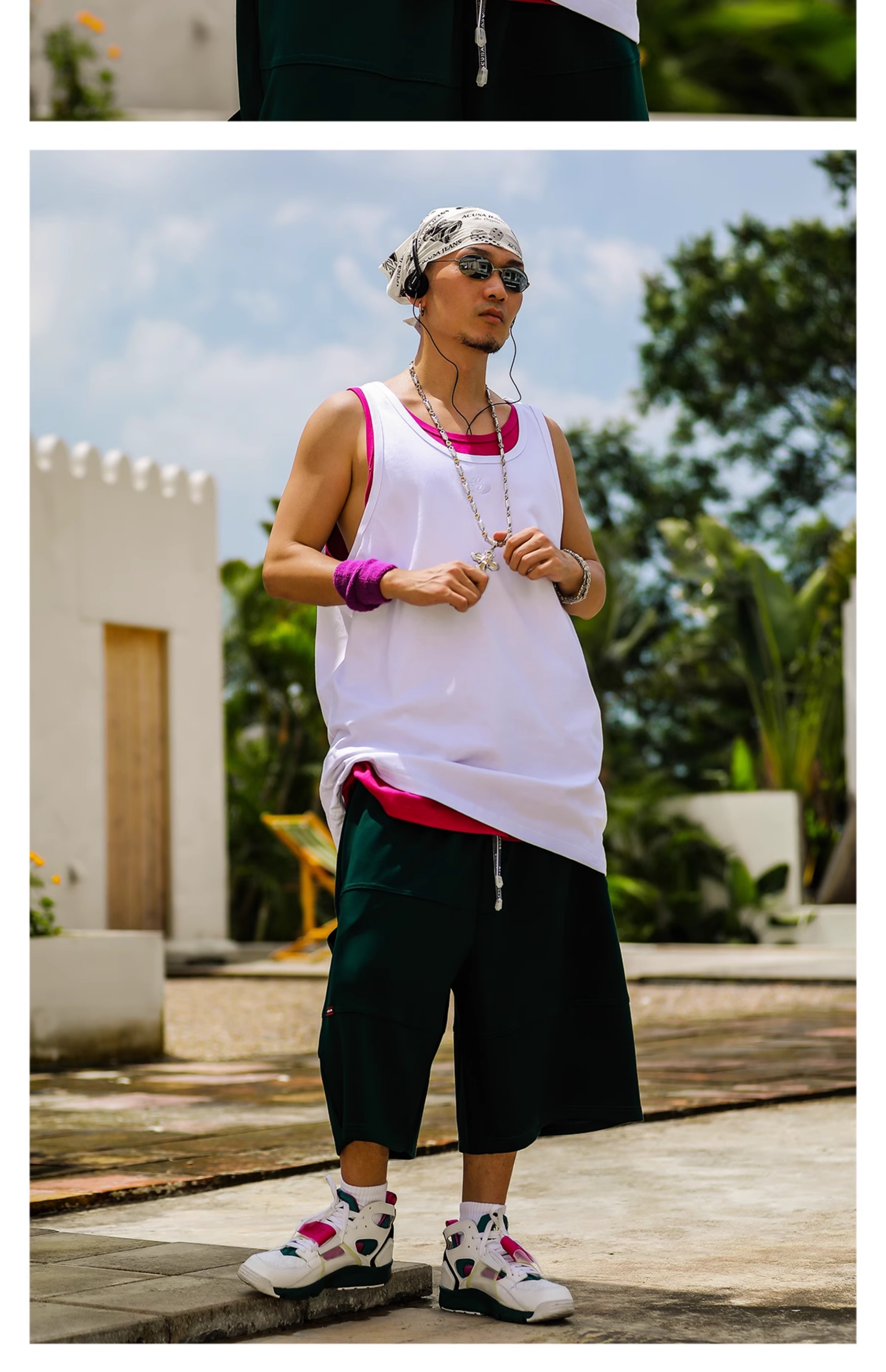 Acusa美式街頭嘻哈基礎款肥大版型跨欄背心健身窄肩帶90s復古夏季