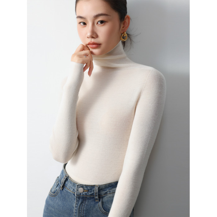 德國敭子紗無縫一體60衹精紡100%純羊毛衫女高領薄款搭軟打底衫