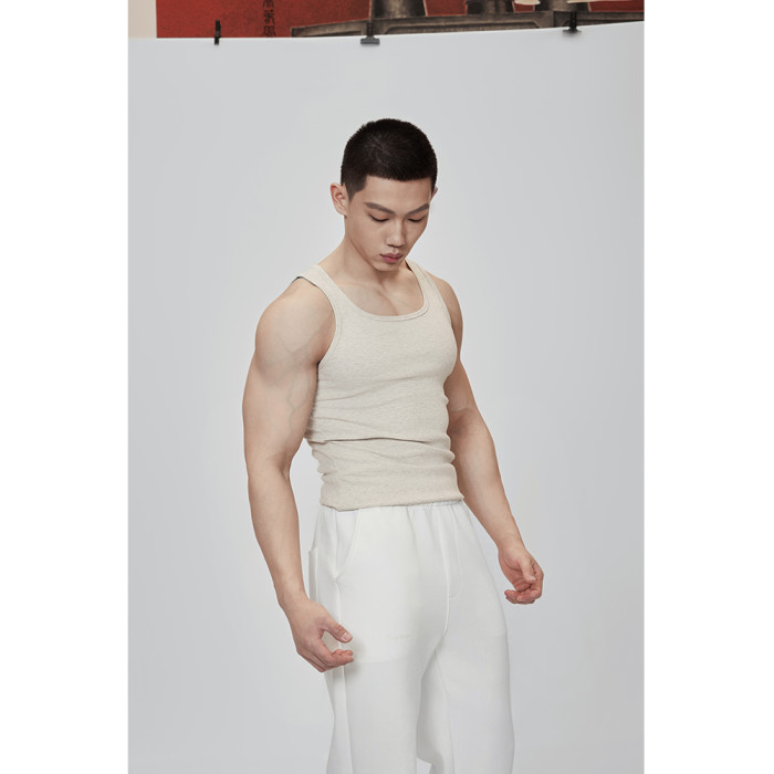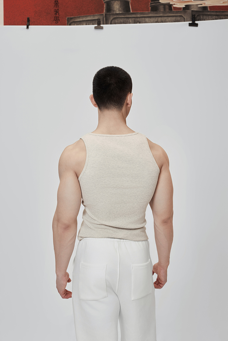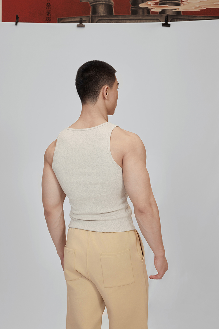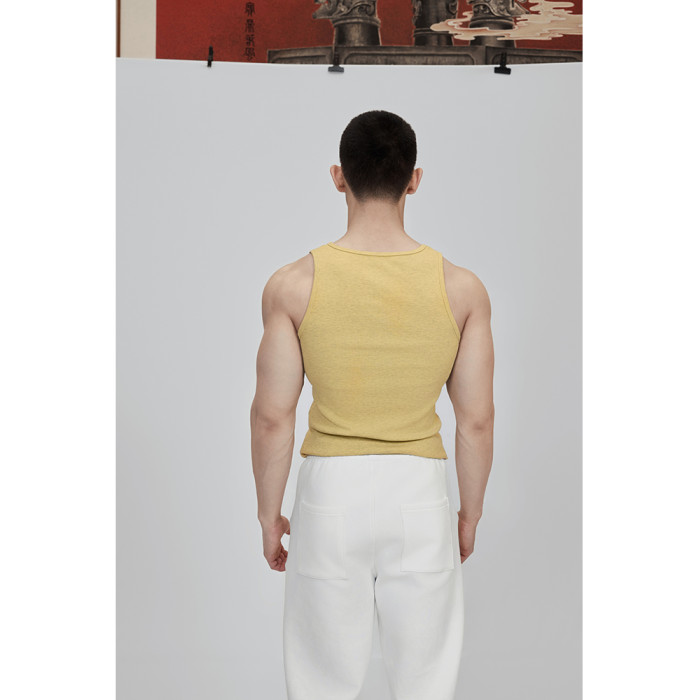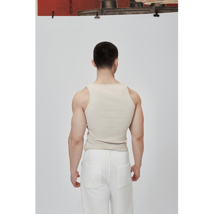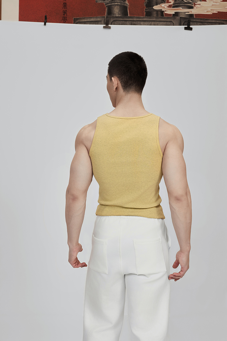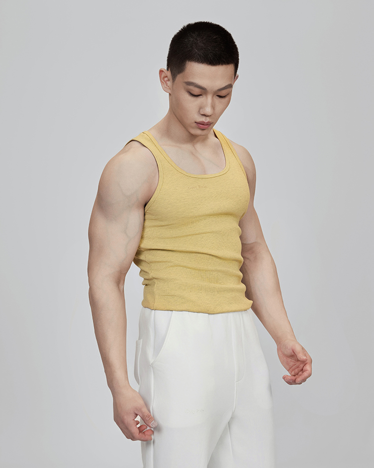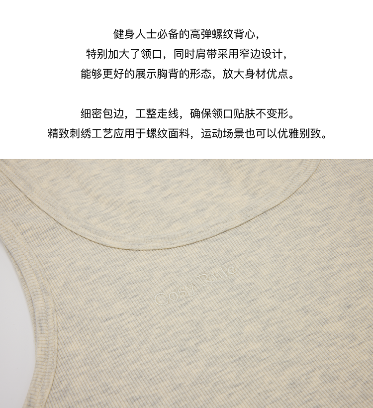 Cosy Rule 緊身款運動休閒健身螺紋背心|燕麥色 芥末黃