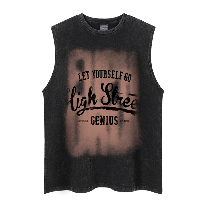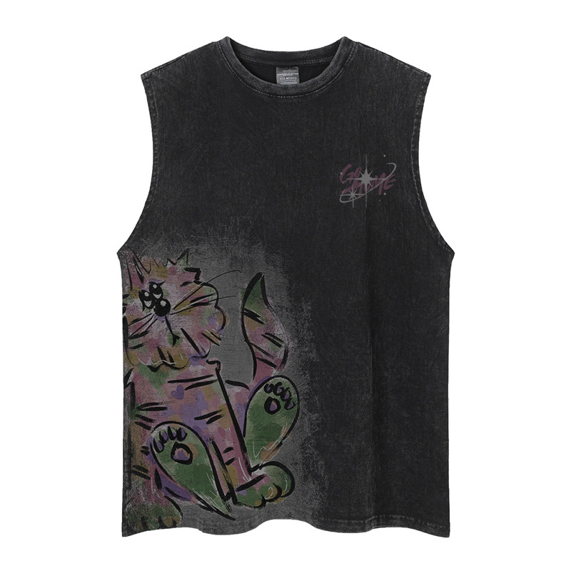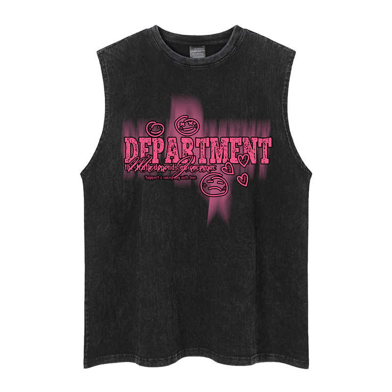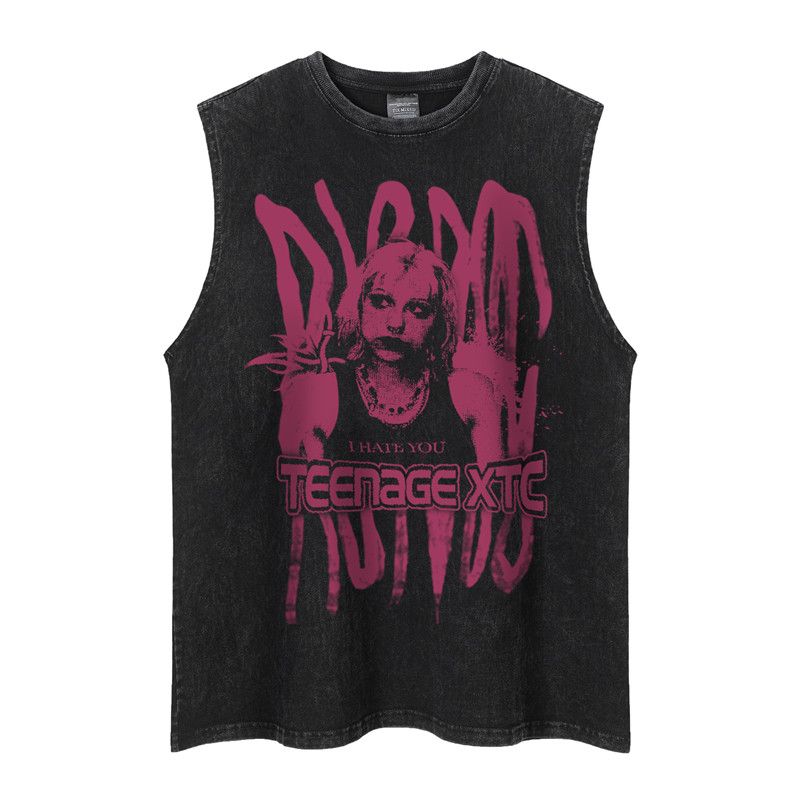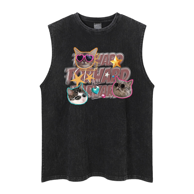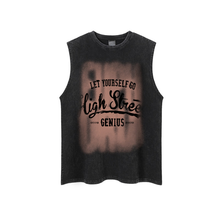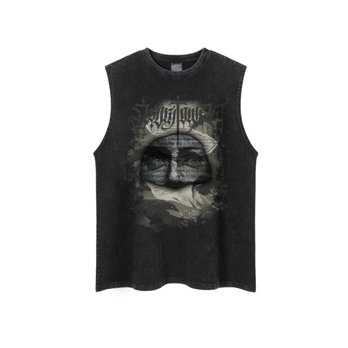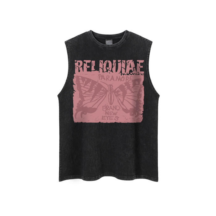 別致的少年美式高街潮牌痞帥風寬松坎肩背心男款夏季復古無袖t恤