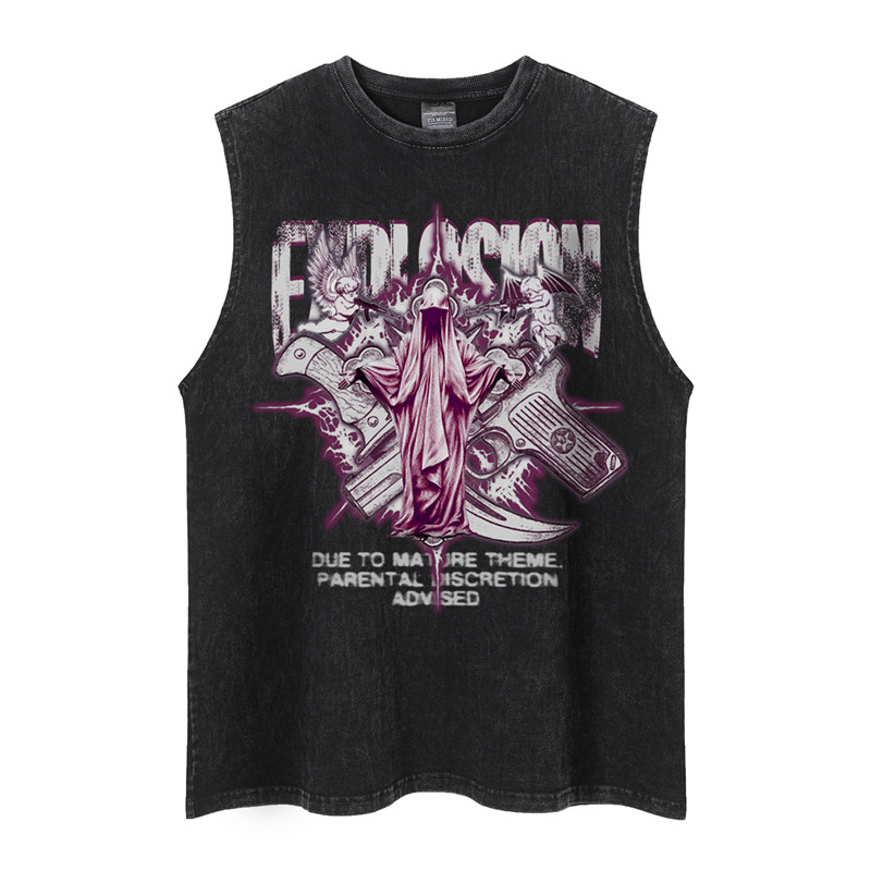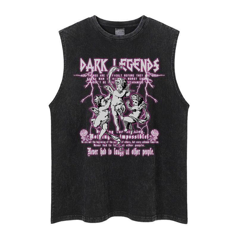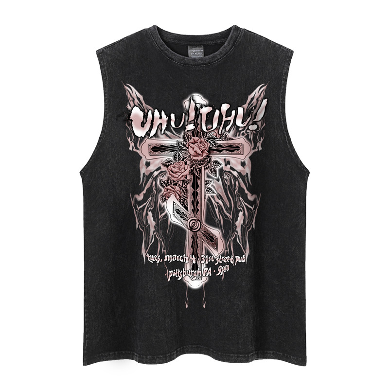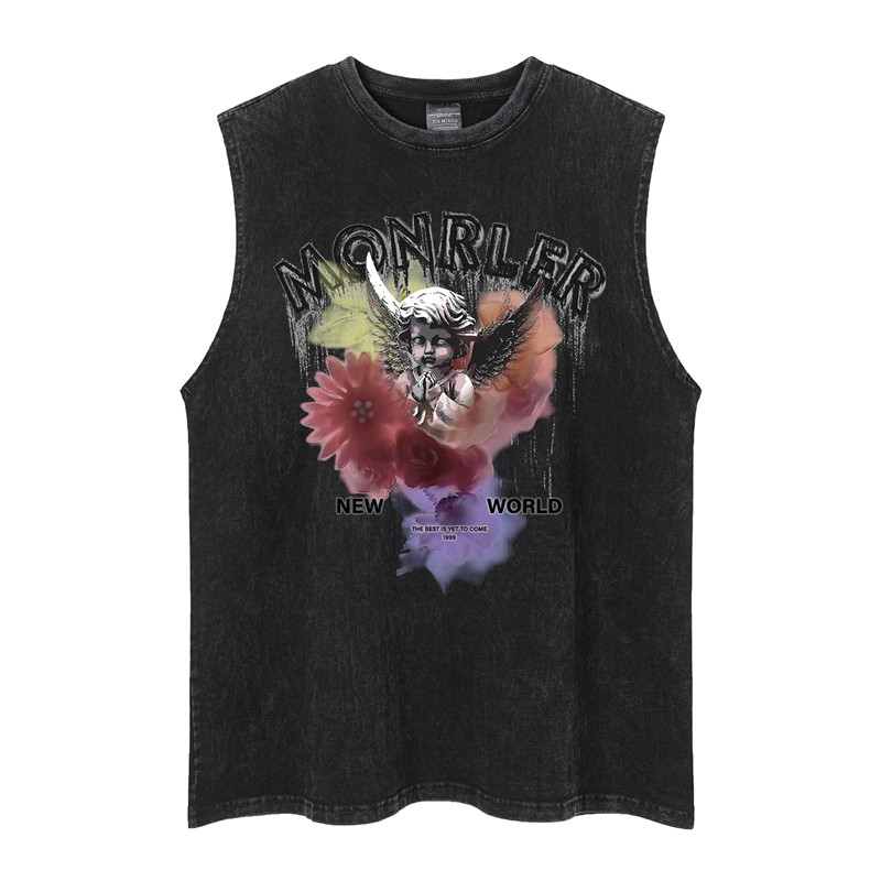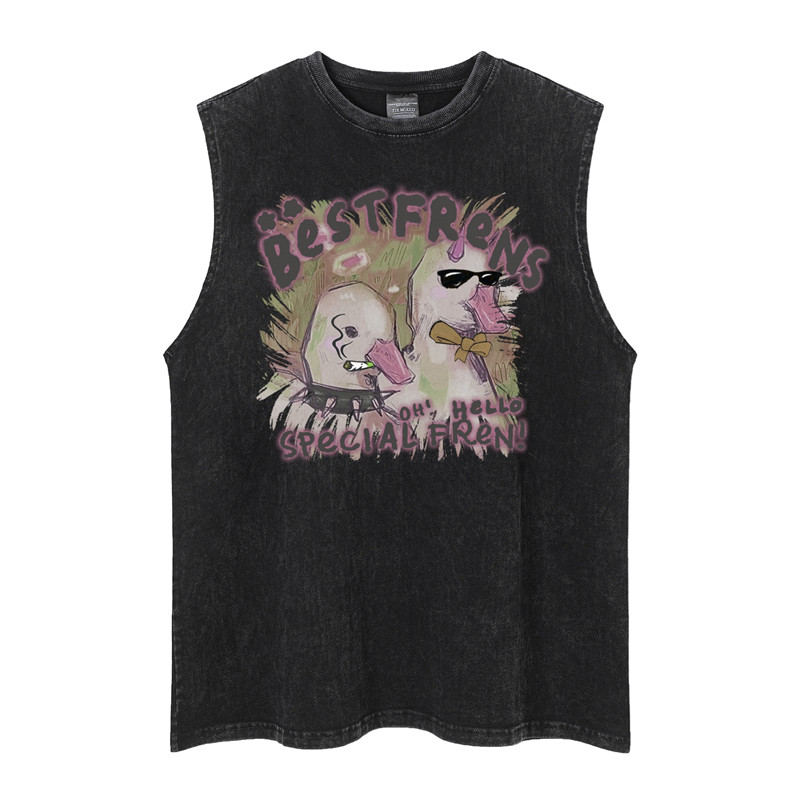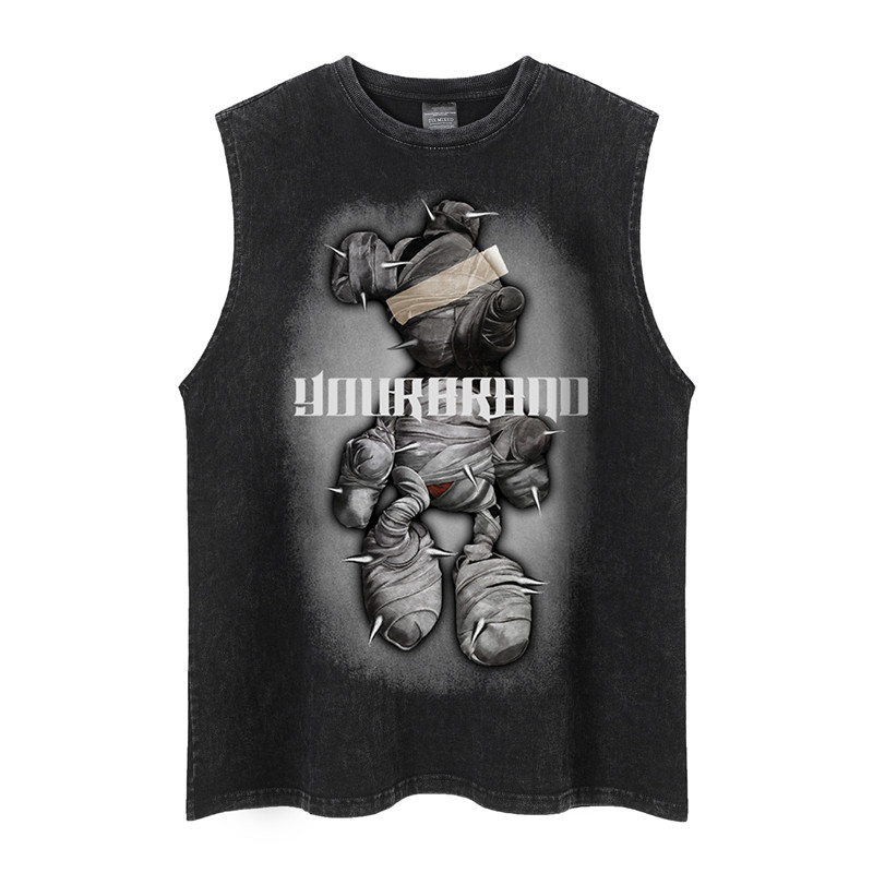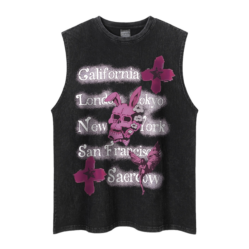別致的少年美式高街潮牌痞帥風寬松坎肩背心男款夏季復古無袖t恤