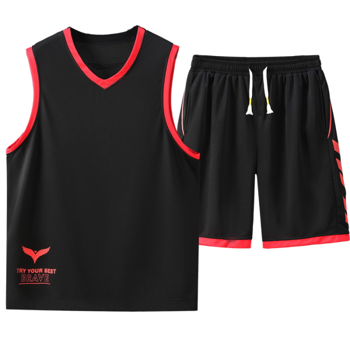 380斤加肥加大V領背心男籃球運動大碼涼爽速乾健身跑步休閒套裝