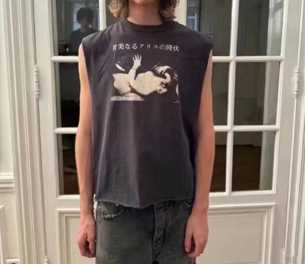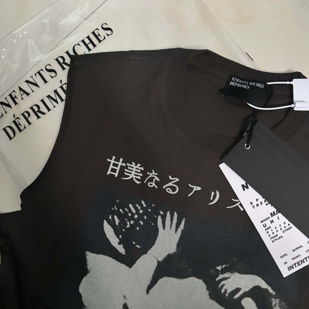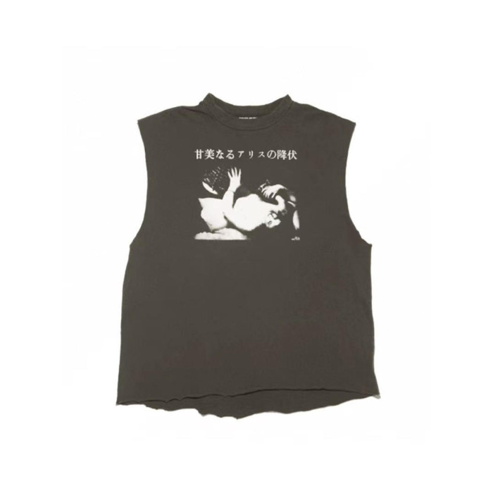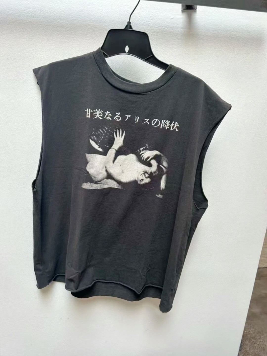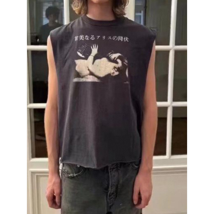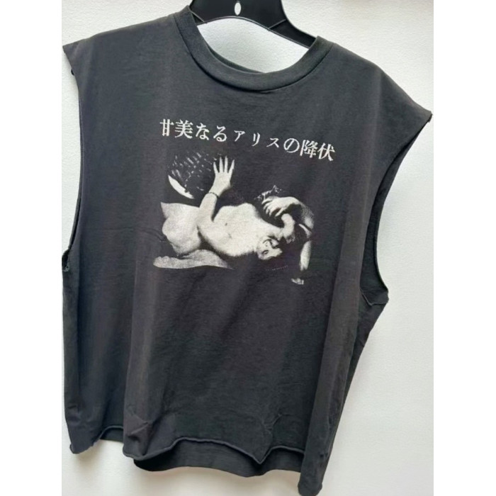 ERD憂鬱的富二代新款黑白圖像睡美人水洗磨棉背心無袖T恤男女潮