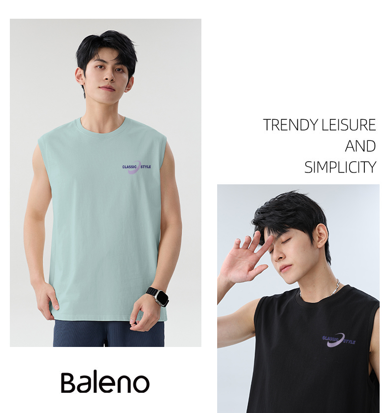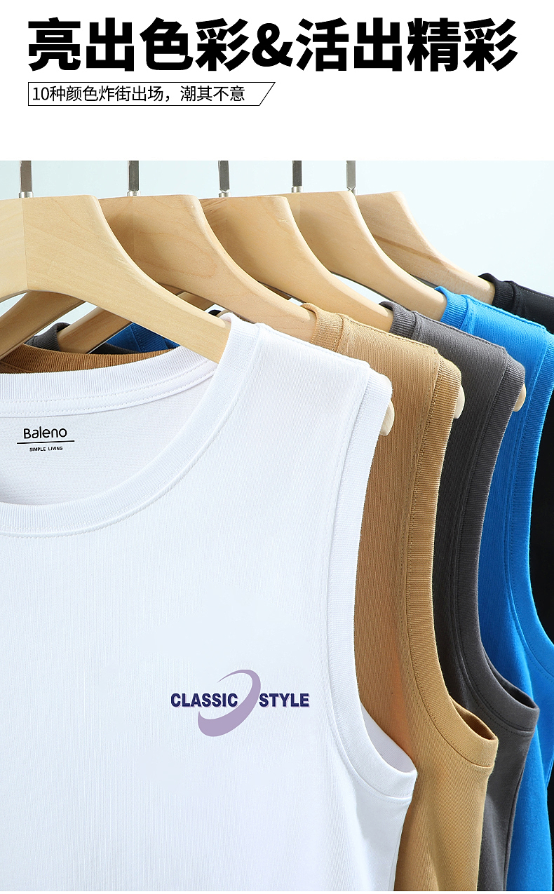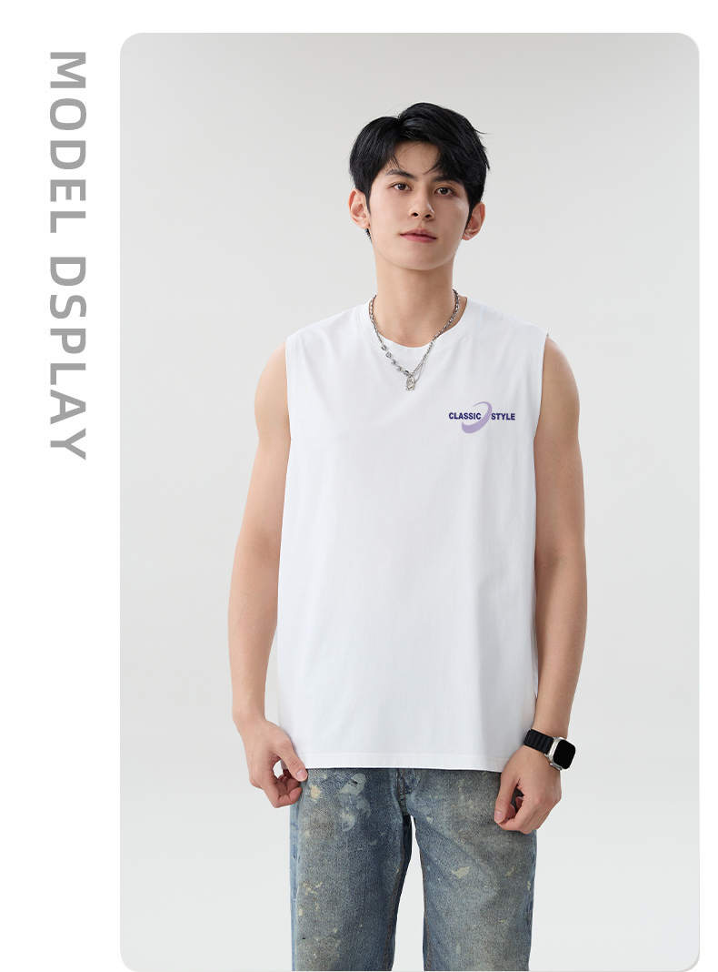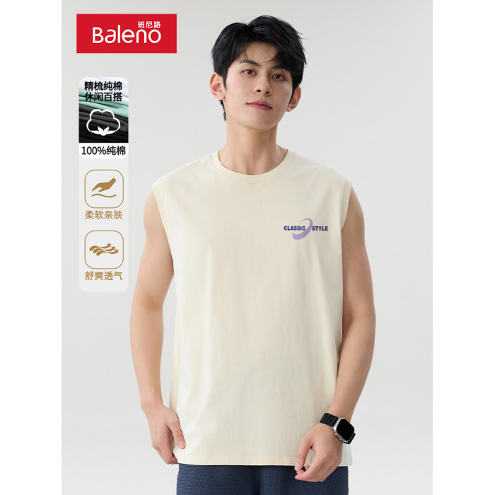 班尼路米色純棉無袖背心男夏季美式字母t恤寬松情侶運動坎肩上衣