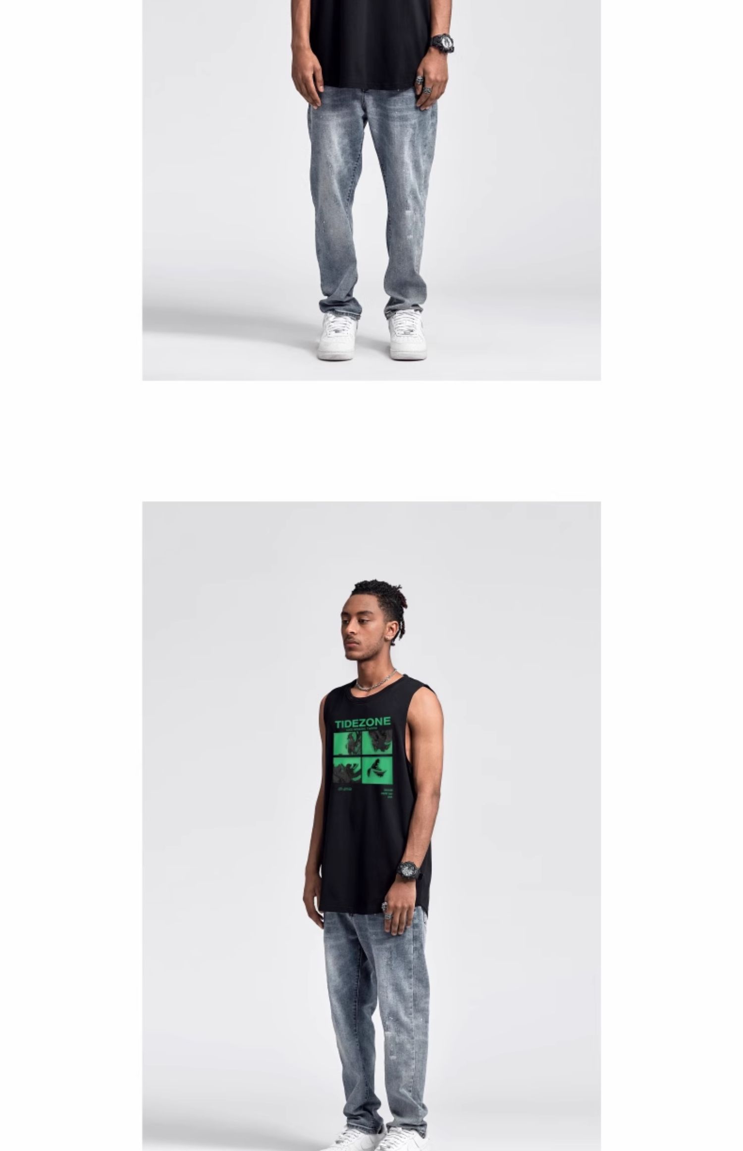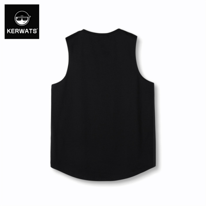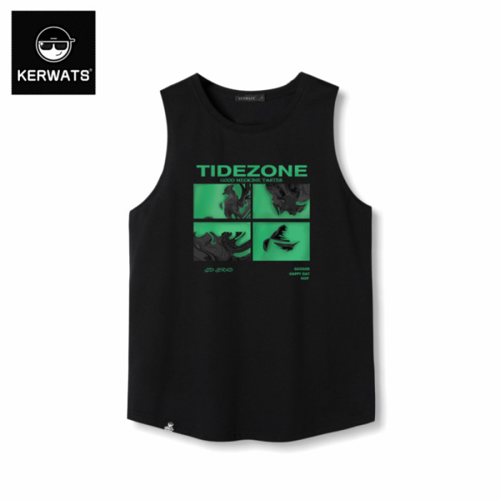 KERWATS夏季美式復古塗鴉圖案印花無袖T恤加肥加大純棉運動背心男