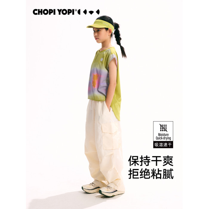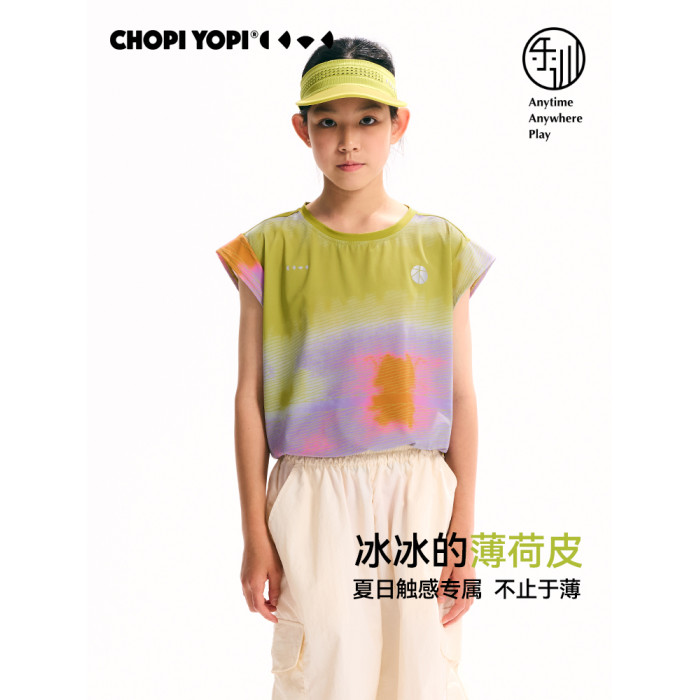chopiyopi【薄荷皮】女童印花速乾飛袖T恤夏季新款防曬涼感運動T