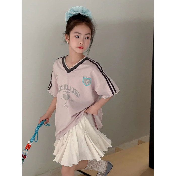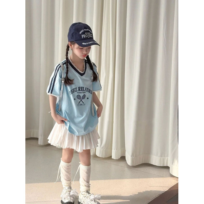 女童短袖T恤兒童上衣夏裝2025新款大童女孩韓範條紋潮流藍色體恤6