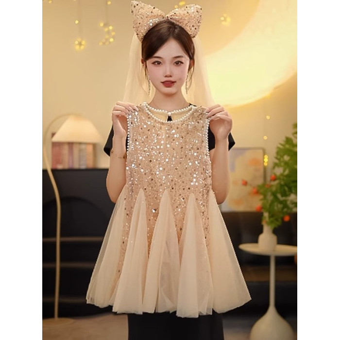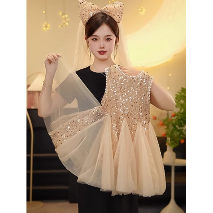 女童亮片公主裙夏季2025新款兒童洋氣禮服裙子夏裝女孩背心連衣裙