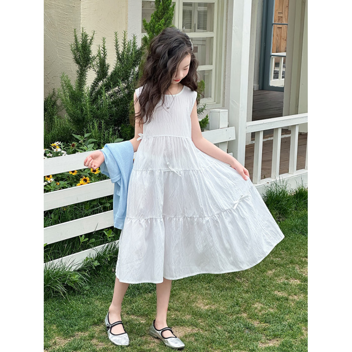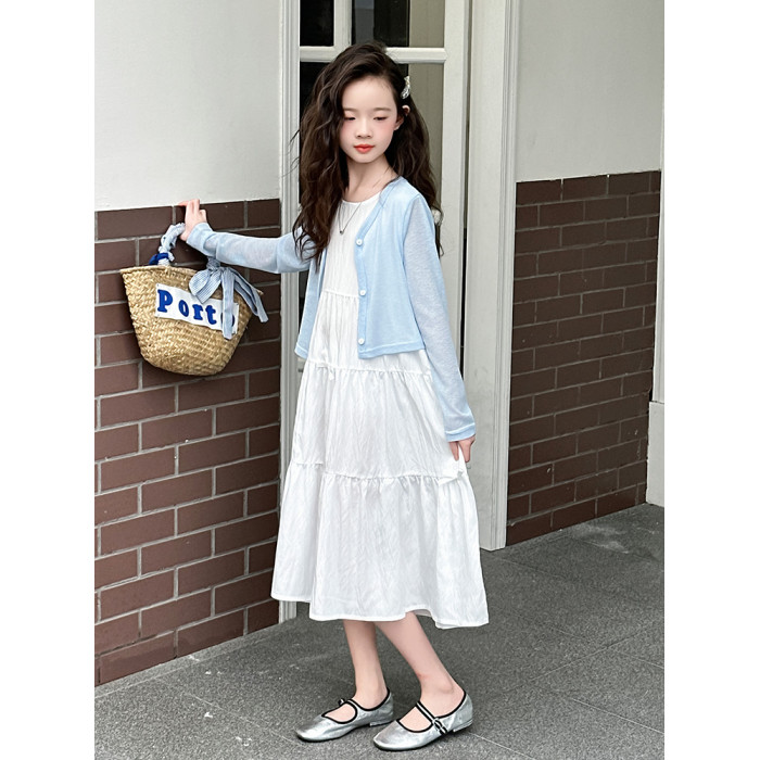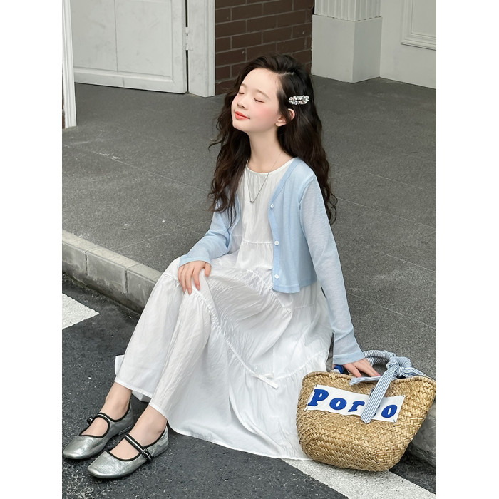 女童夏裝連衣裙2025新款兒童夏季親子防曬開衫女孩白色長裙兩件套