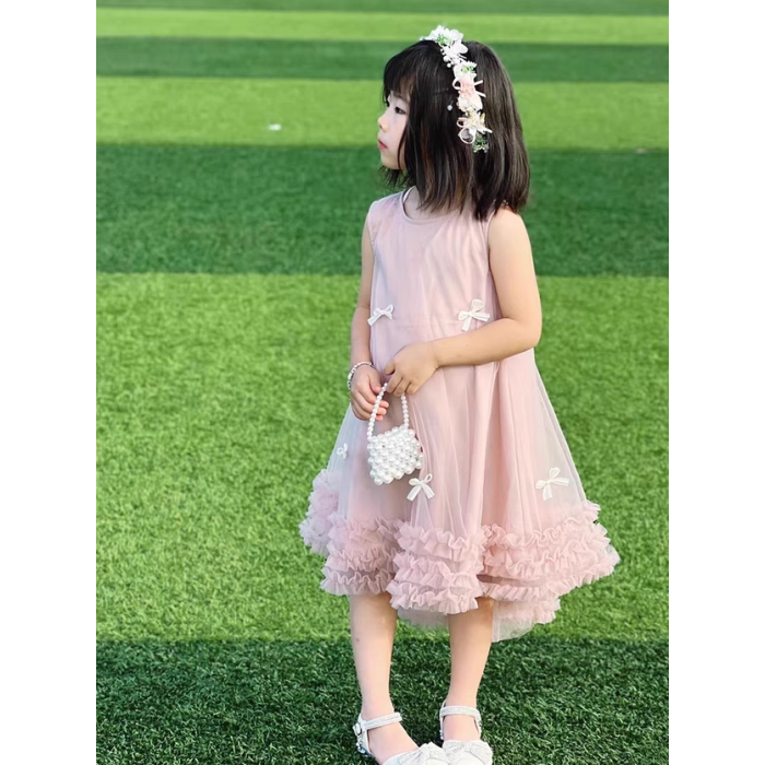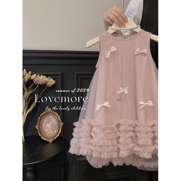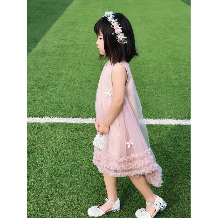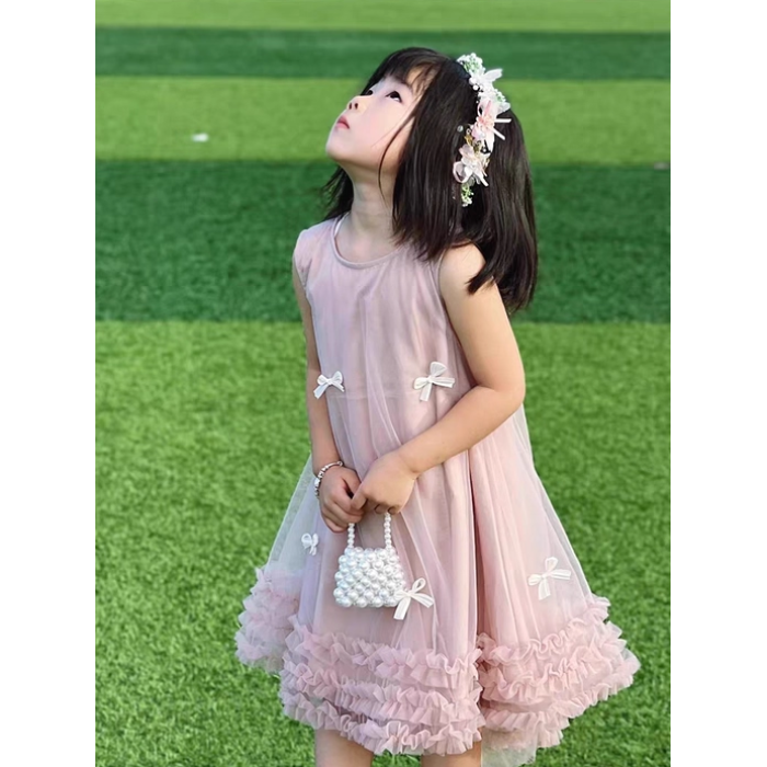 女童無袖立體蝴蝶結網紗裙2025夏裝女寶女童甜美連衣裙子