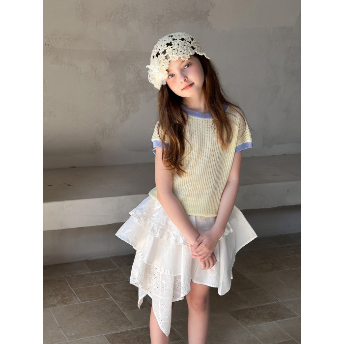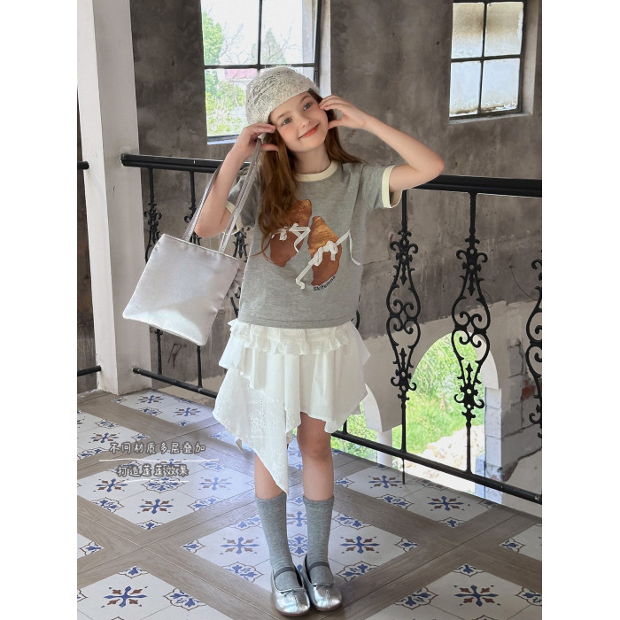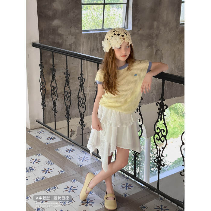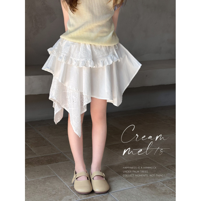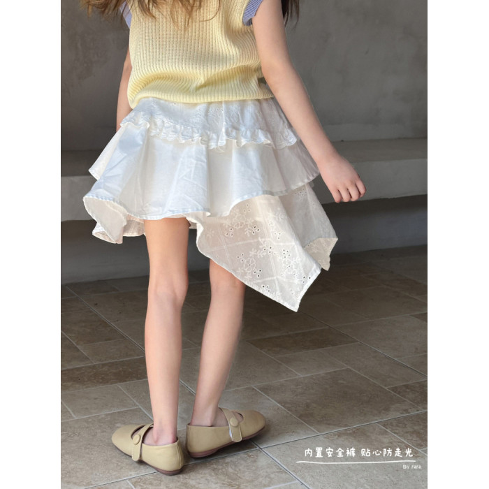 【風鈴】藍小爸童裝女童親子法式不規則半身裙夏新款蕾絲拼接半裙