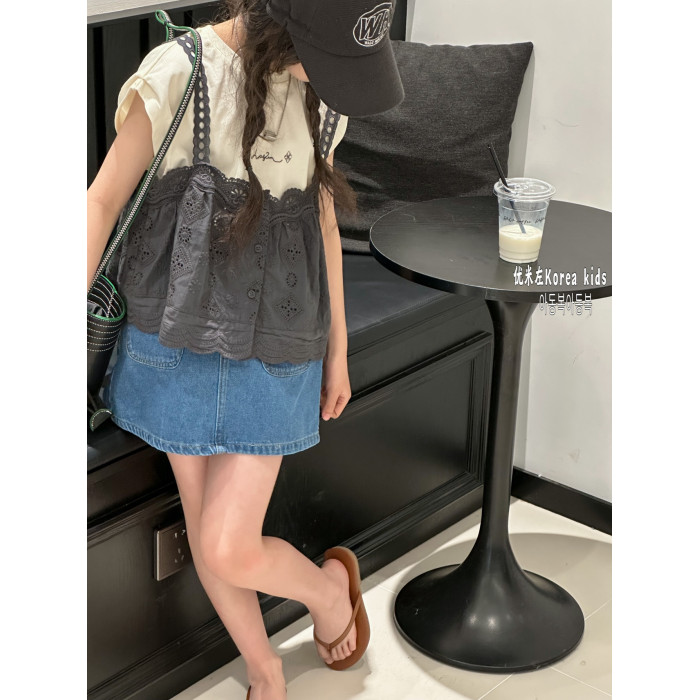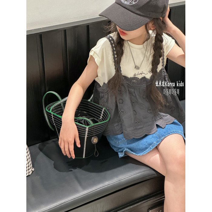 波拉bora韓國童裝女童夏裝洋氣2025女孩氣質上衣中大童短袖T恤潮