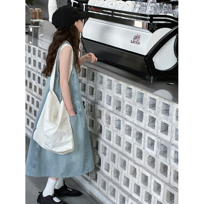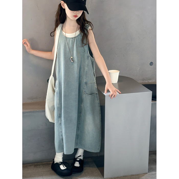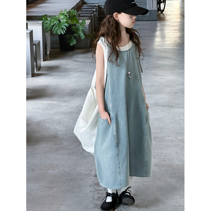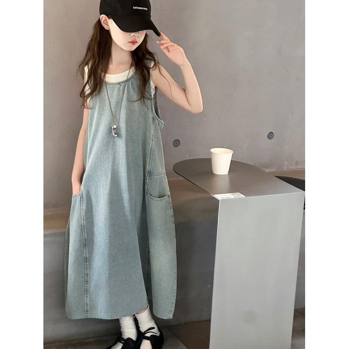 女童牛仔長裙夏季2025新款洋氣兒童無袖裙女孩公主裙女大童連衣裙