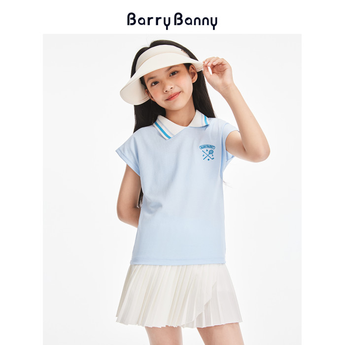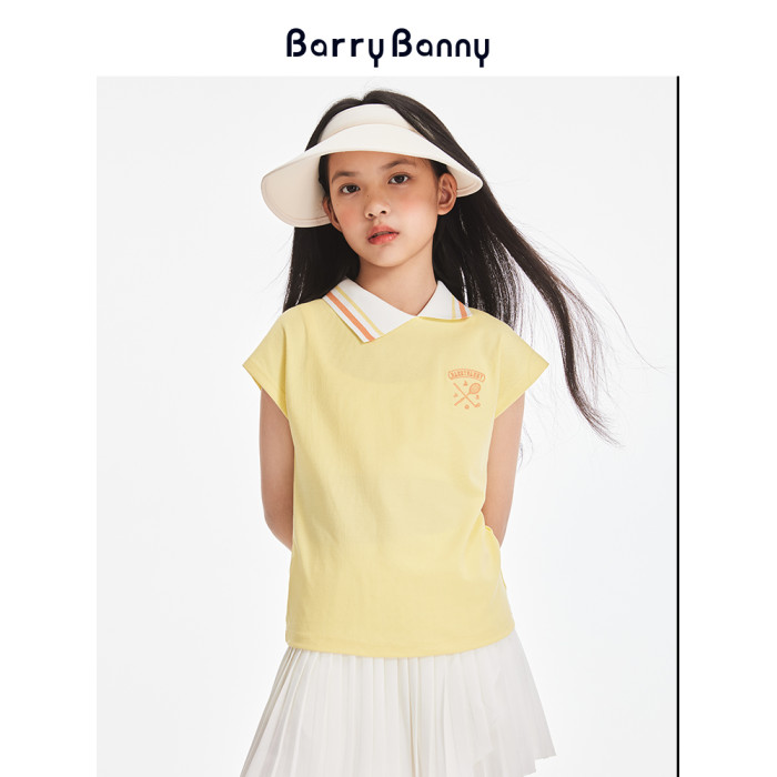 BarryBanny女童運動POLO衫2025夏季新款兒童純色百搭短袖T恤上衣