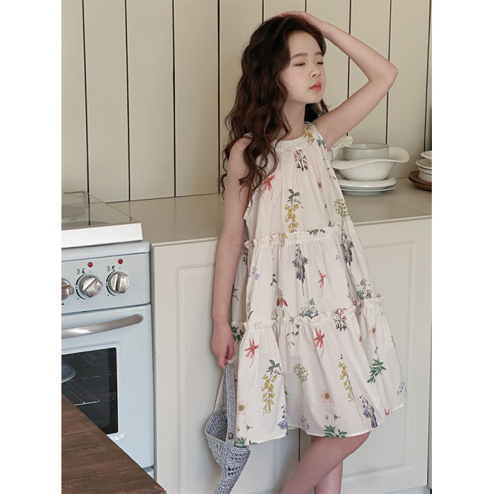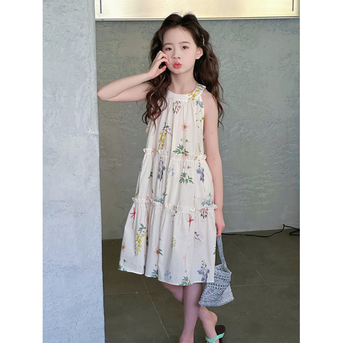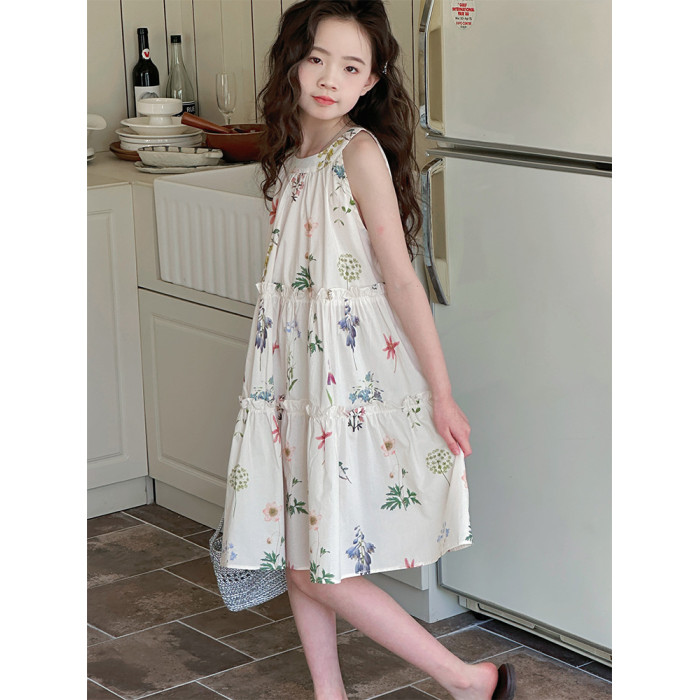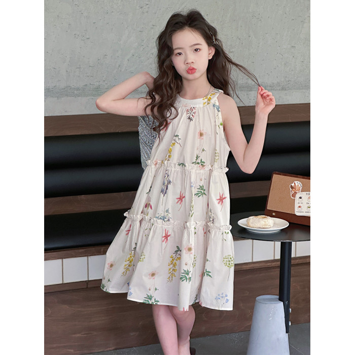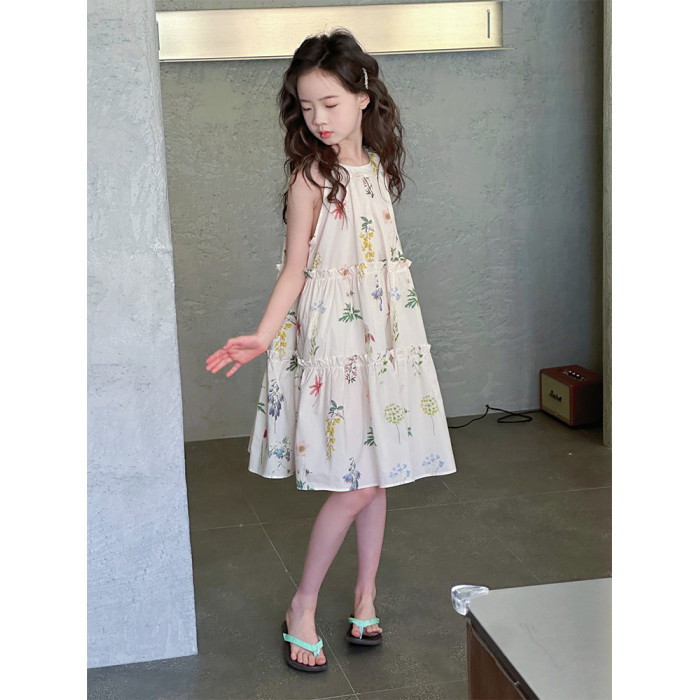 女童吊帶連衣裙夏裝2025新款兒童洋氣碎花背心裙夏季女孩純棉裙子