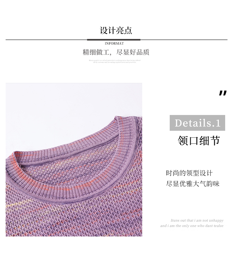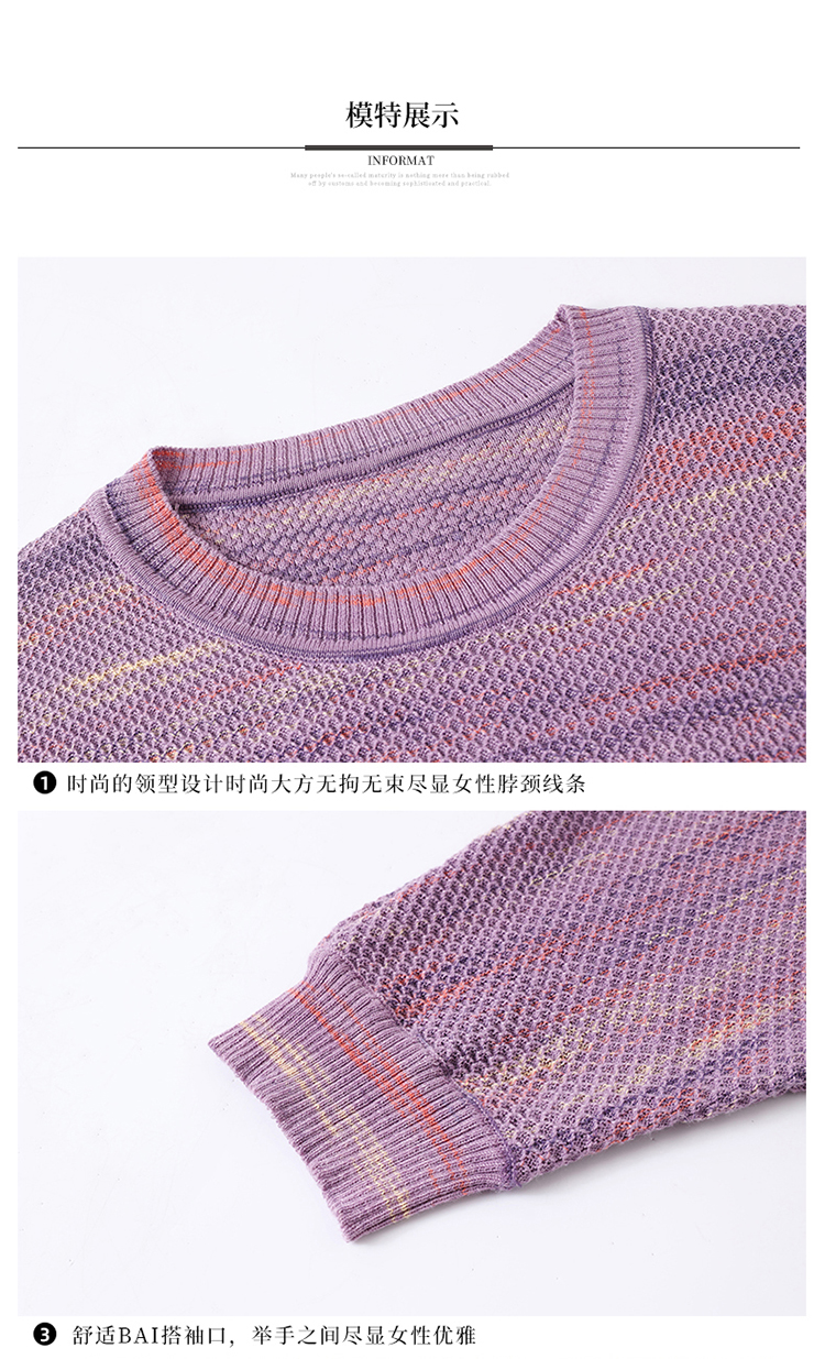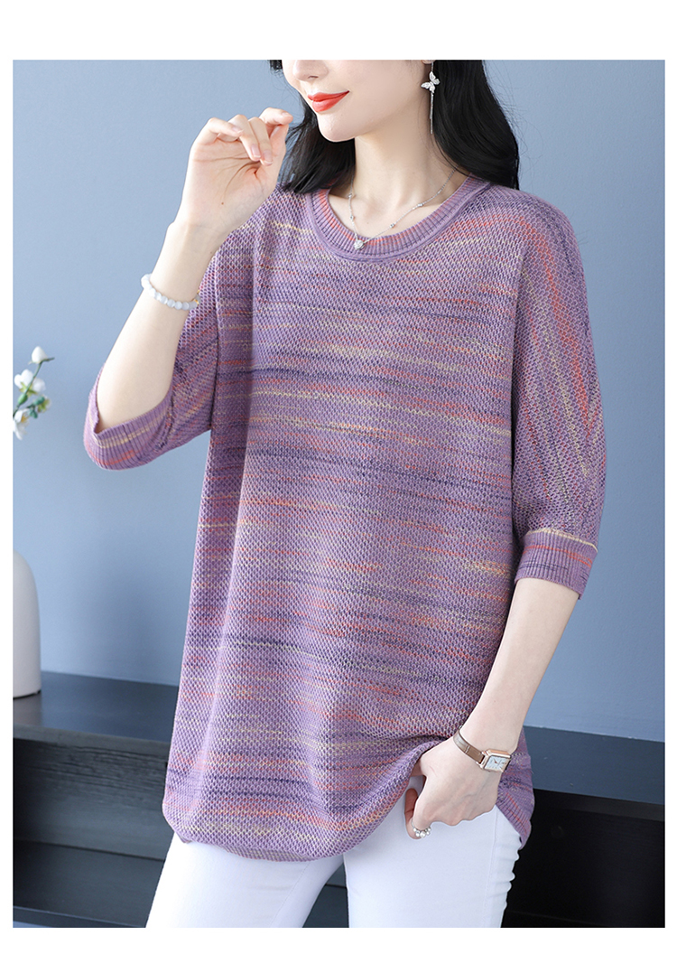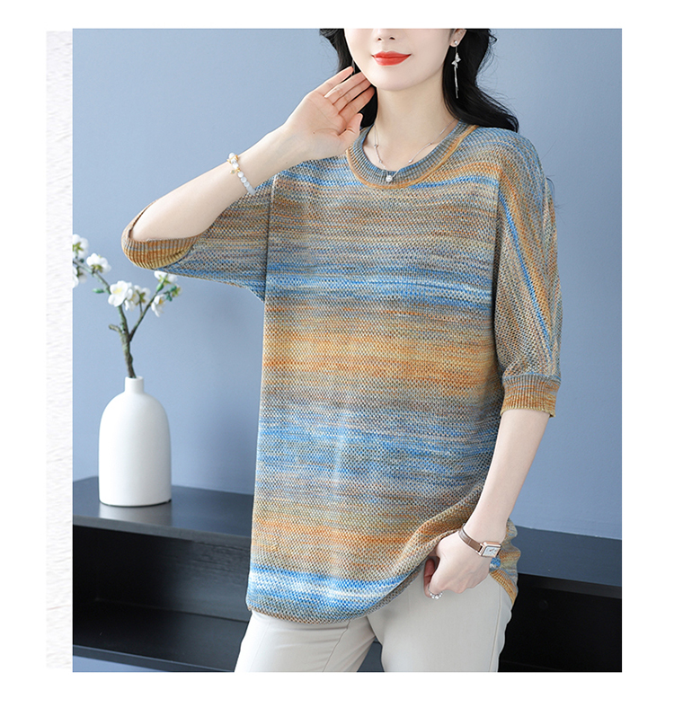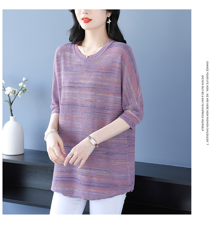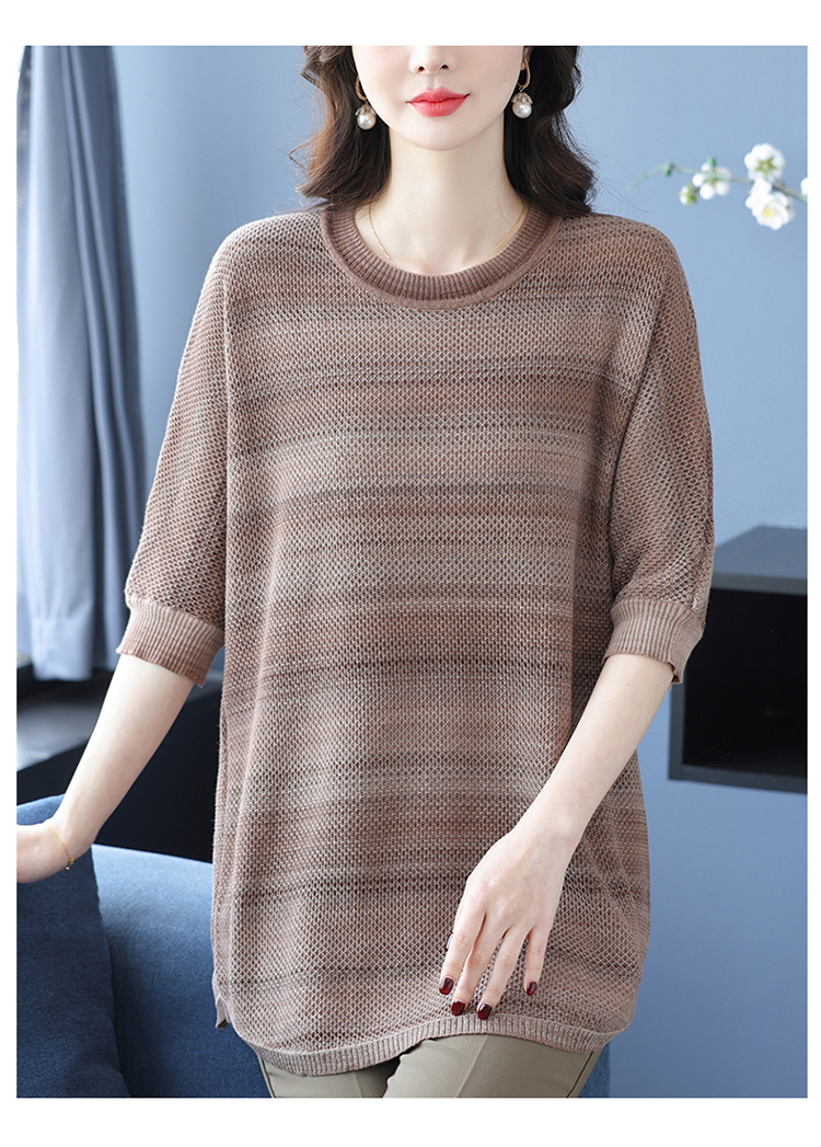 媽媽春裝洋氣冰絲條紋打底衫寬松加大碼遮肚子中長款桑蠶絲針織衫