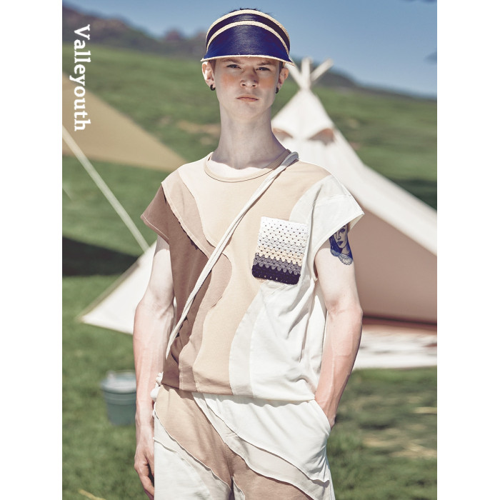 川流 手工鉤織口袋拼接寬松版夏季潮流無袖背心 山穀少年原創男裝