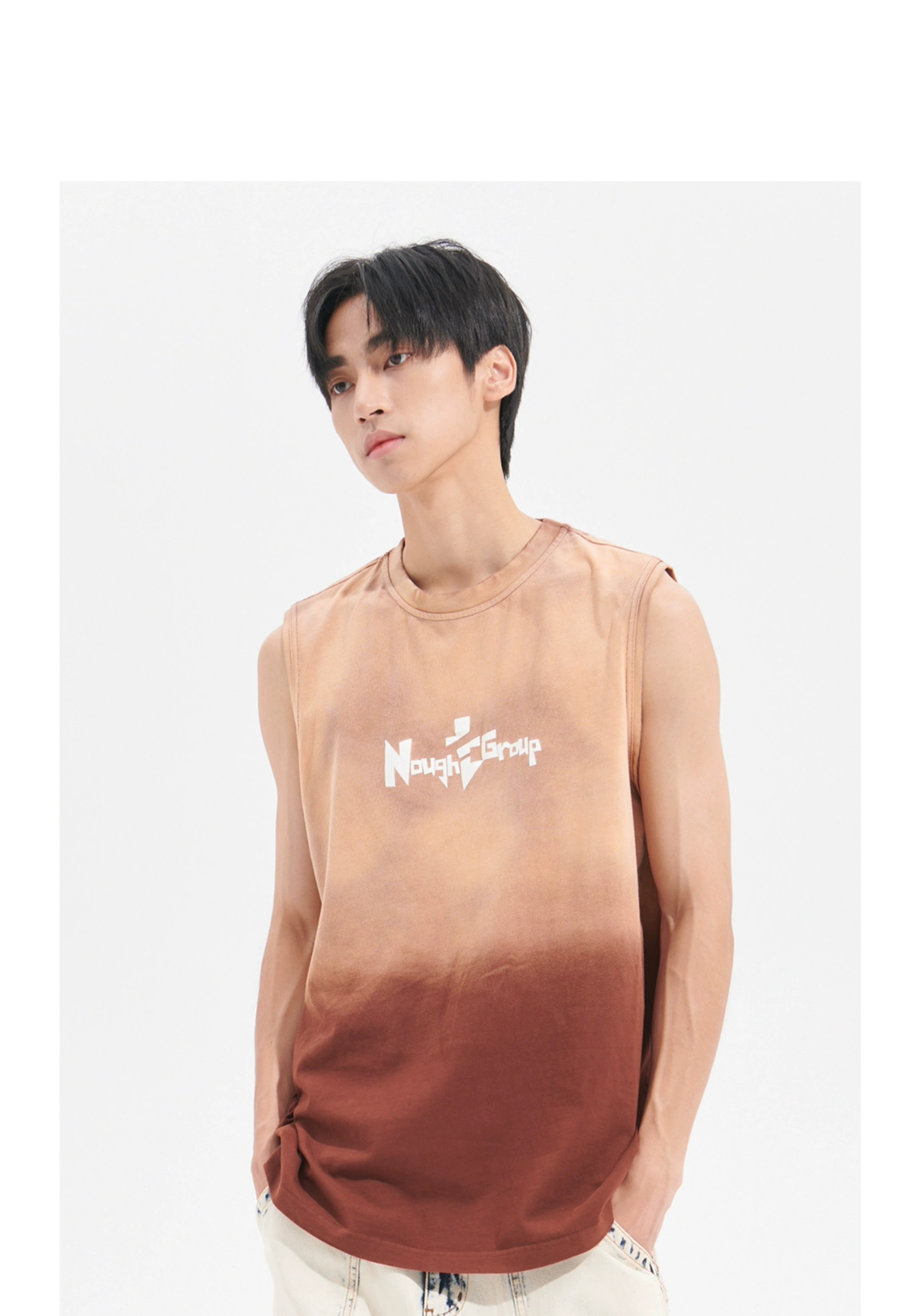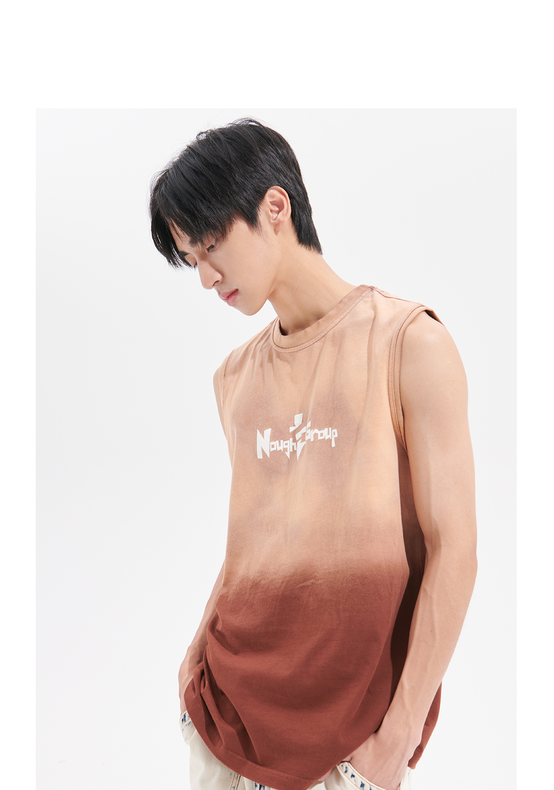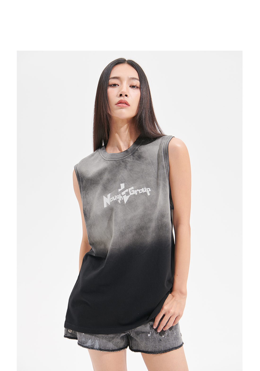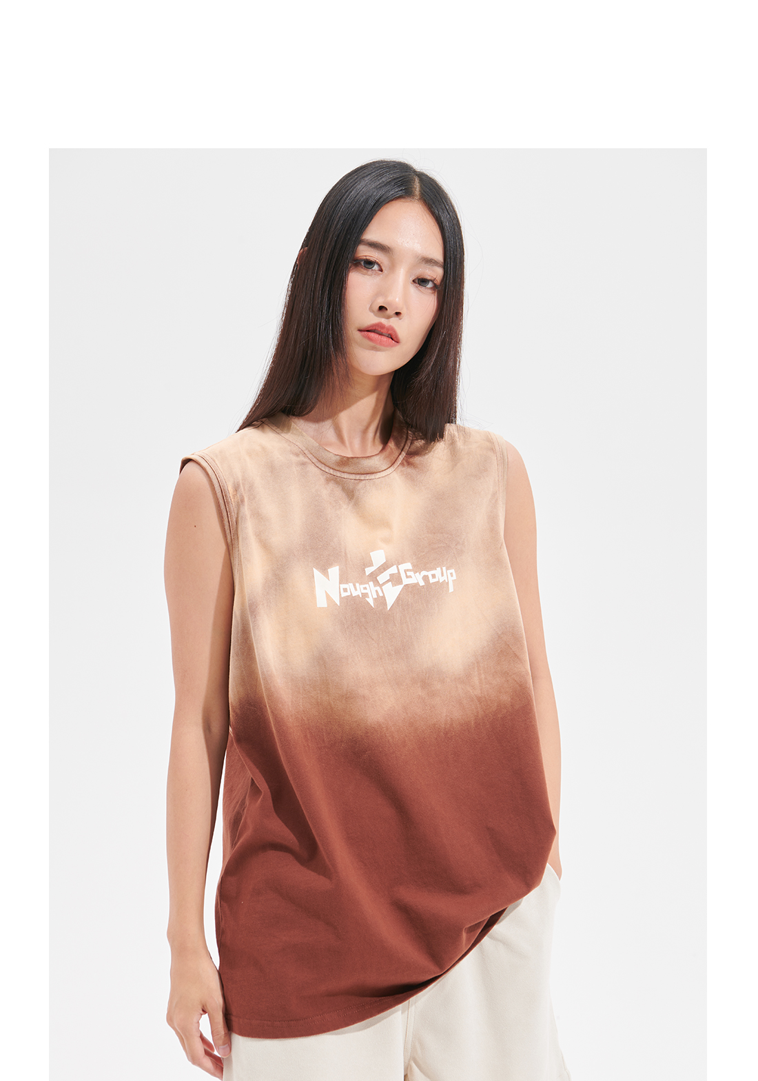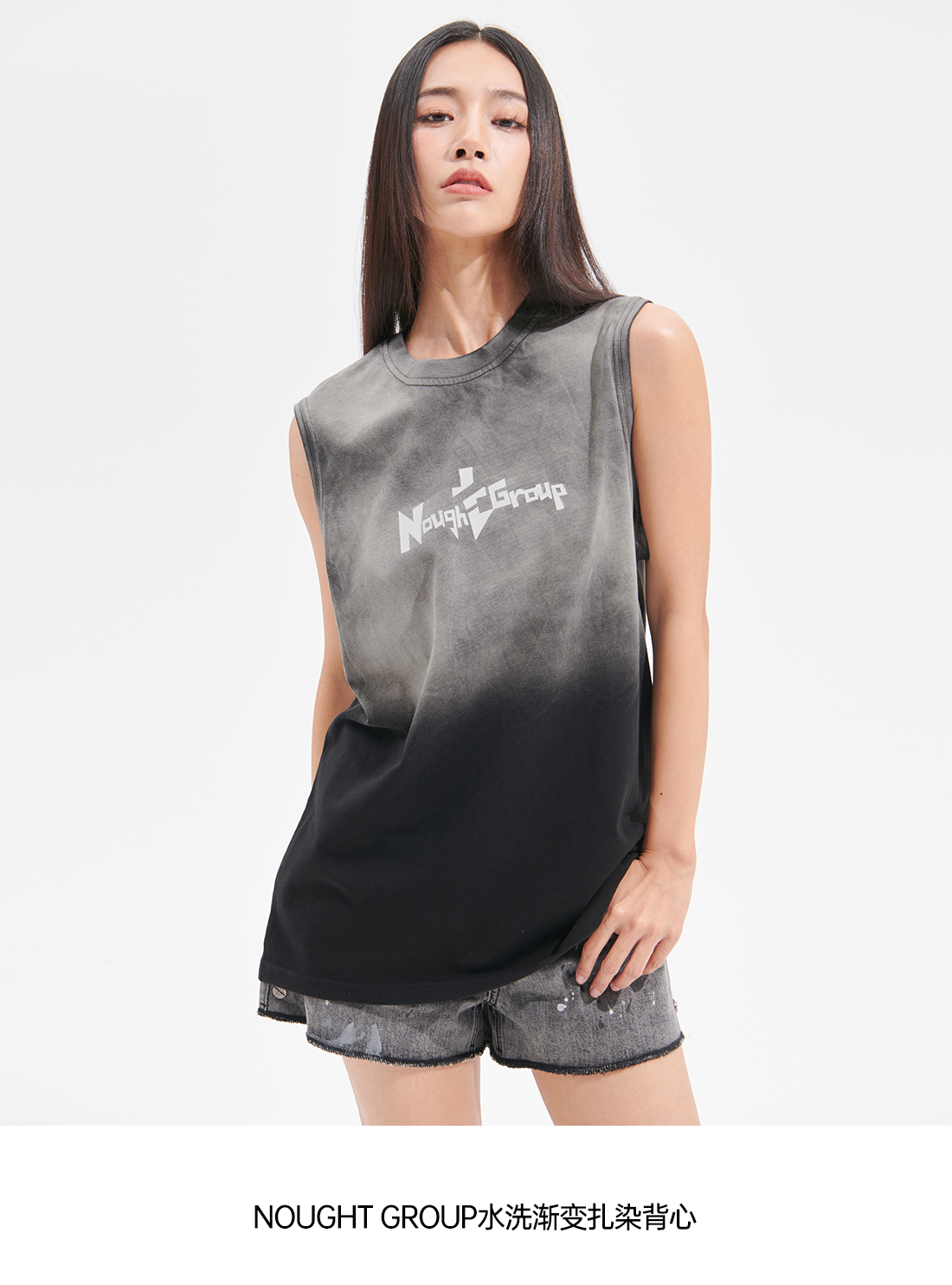 Nought Group夏季漸變水洗紥染背心做舊風潮牌基礎款無袖坎肩T恤