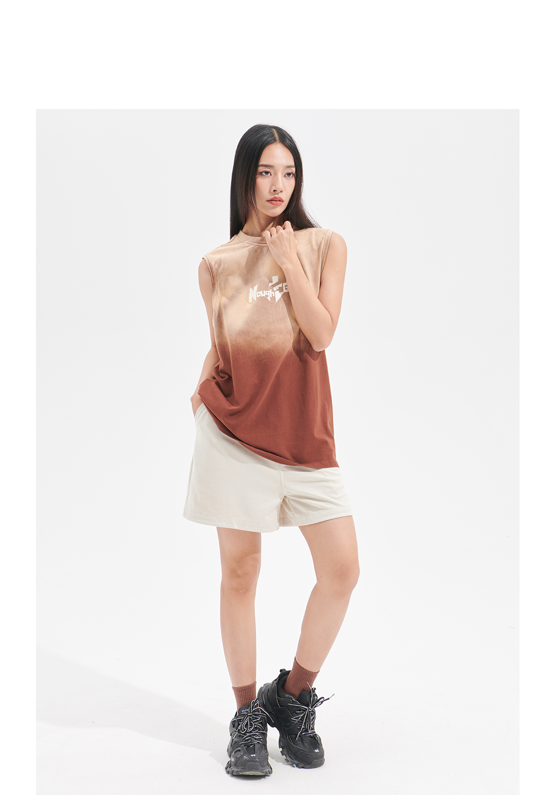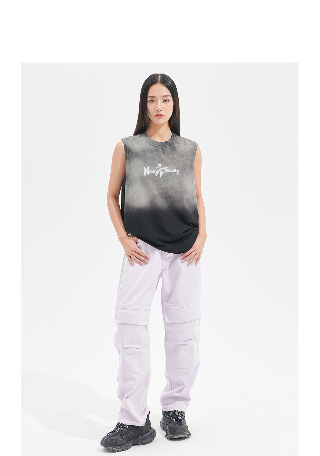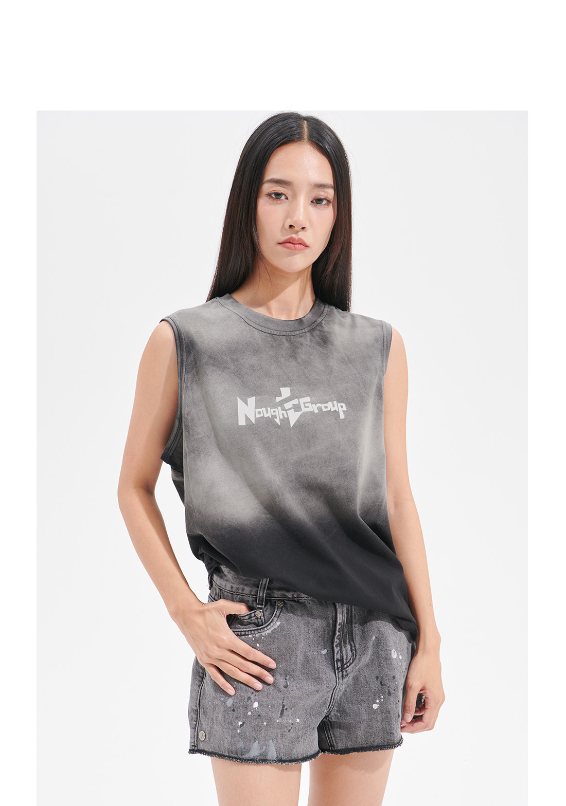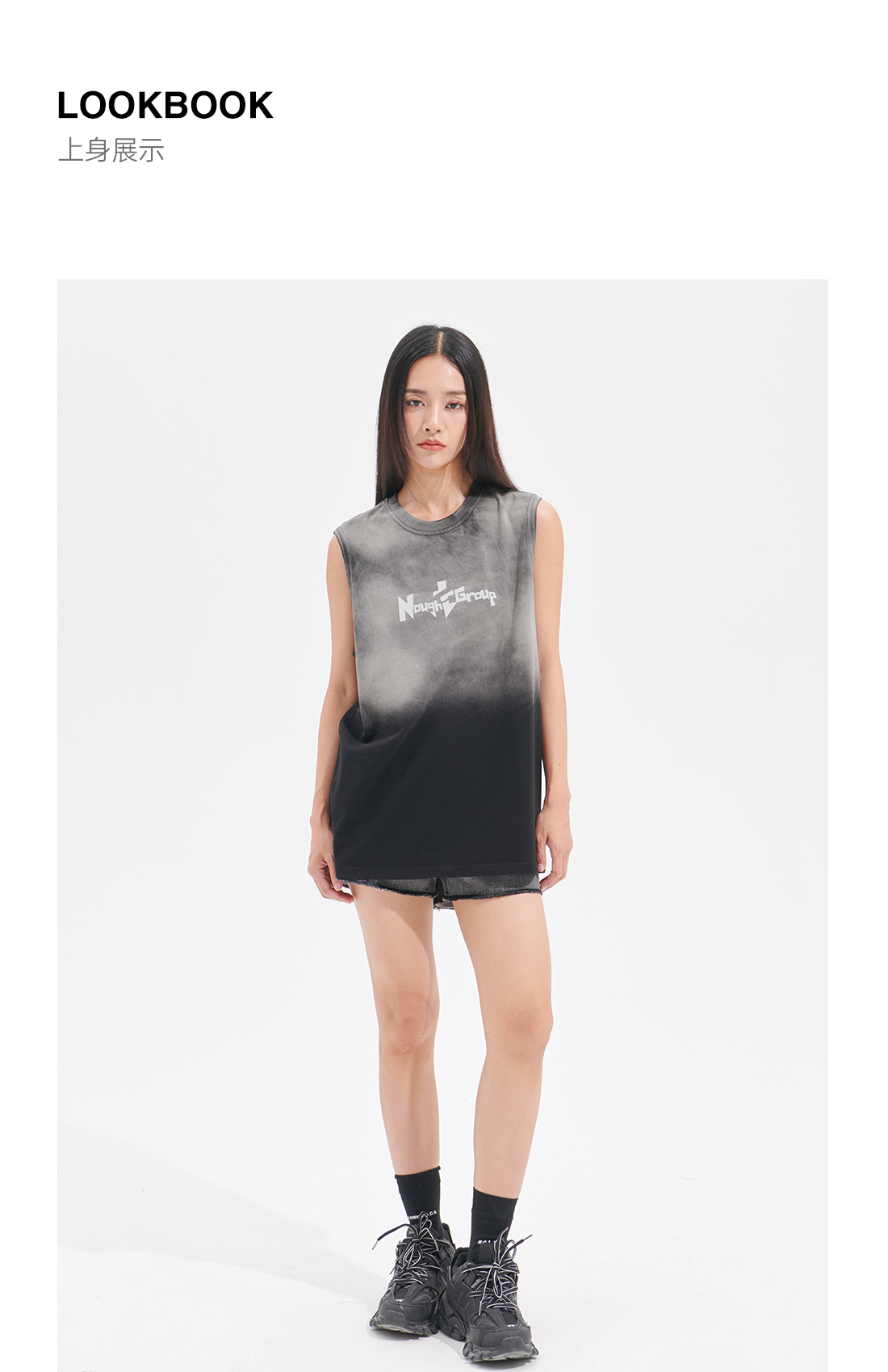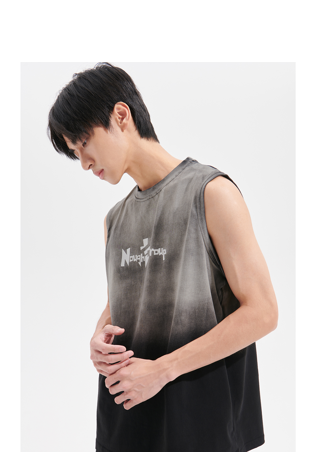 Nought Group夏季漸變水洗紥染背心做舊風潮牌基礎款無袖坎肩T恤