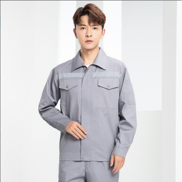 工作套裝春秋夏款男長袖 耐磨建築工地車間上衣反光條勞保服