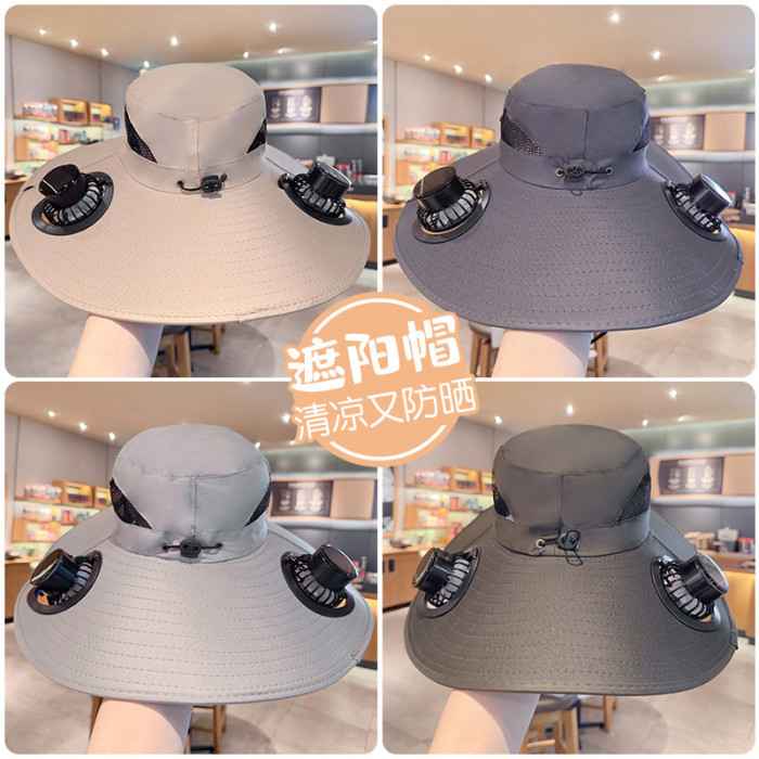 太陽能風扇帽子usb充電風扇防紫外線帽子防曬大帽簷登山漁夫帽