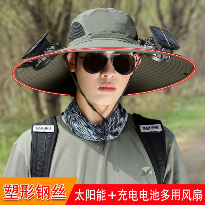 太陽能風扇帽男士戶外登山帽夏季防曬遮陽釣魚帽成人帶風扇的帽子