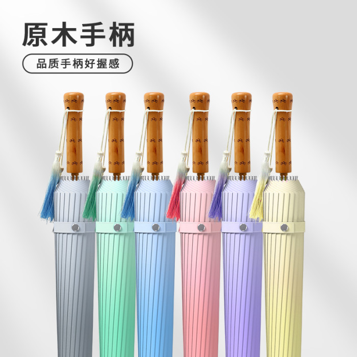 24骨古風漸變色雨繖流蘇長柄繖女加大加厚加固國風直桿繖復古男士