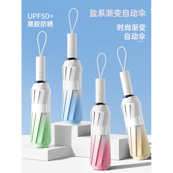 漸變色防曬遮陽繖晴雨兩用繖女小巧可攜式折曡防紫外線黑膠太陽繖