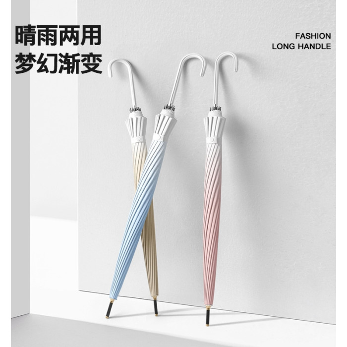 美度16骨漸變色雨繖長柄防風晴雨繖兩用黑膠防曬女遮陽繖M1612