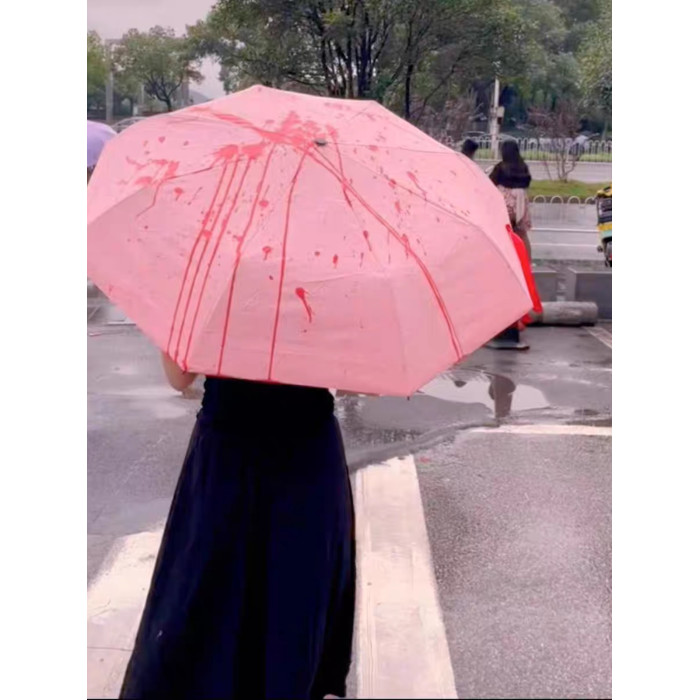 網紅遇水變色雨繖夜行反光鐳射繖折曡防曬學生晴雨繖黑膠遮陽繖潮