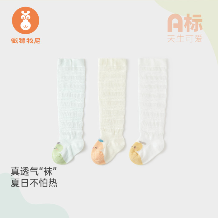微獅牧尼寶寶襪子夏季嬰兒長筒襪網眼透氣防蚊襪新生兒防曬襪薄款