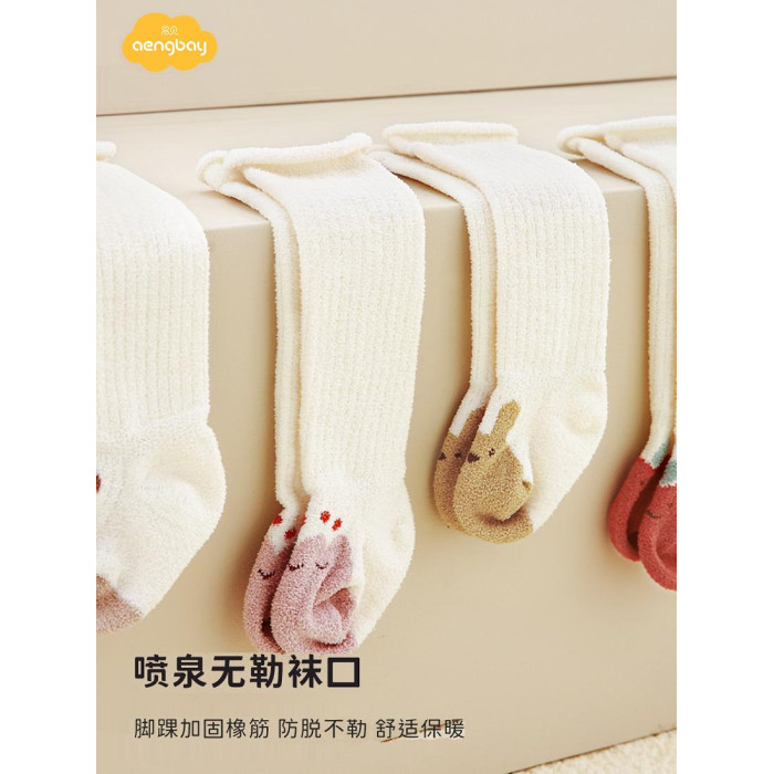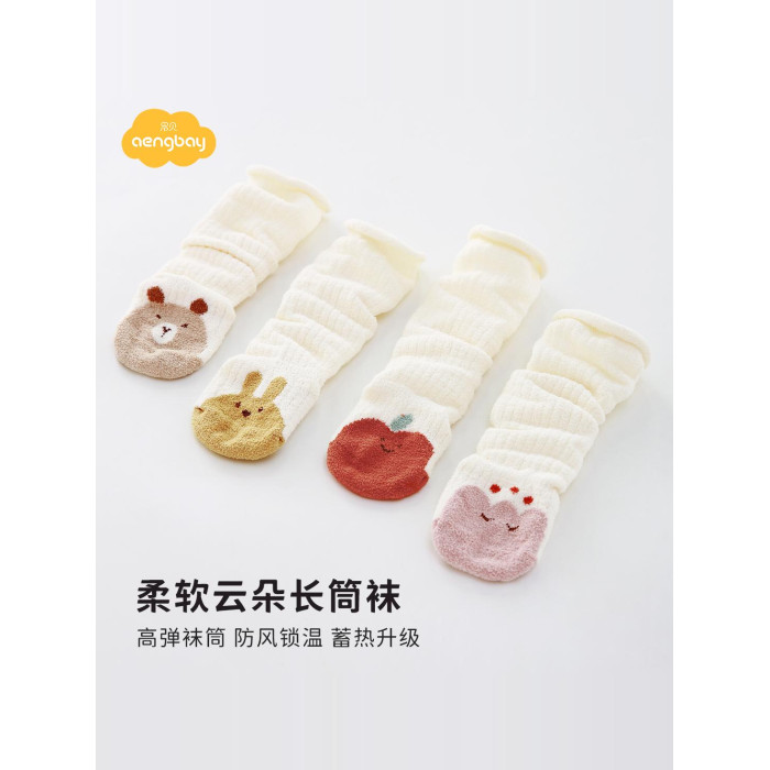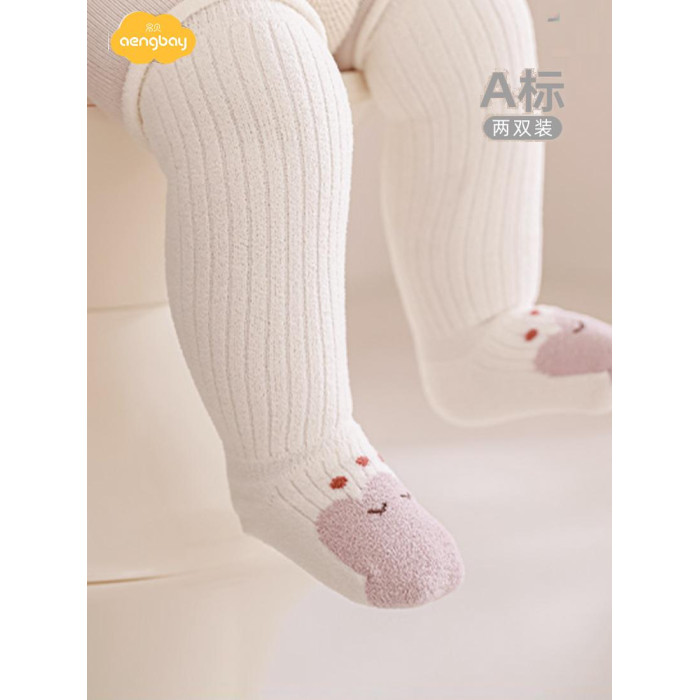 Aengbay嬰兒過膝長筒襪秋冬護膝保暖新生兒無骨襪胎襪寶寶襪子冬