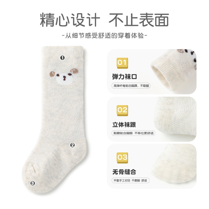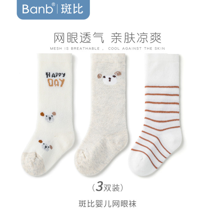 斑比嬰兒長筒襪夏季薄款新初生兒襪子純棉網眼透氣過膝春秋寶寶襪
