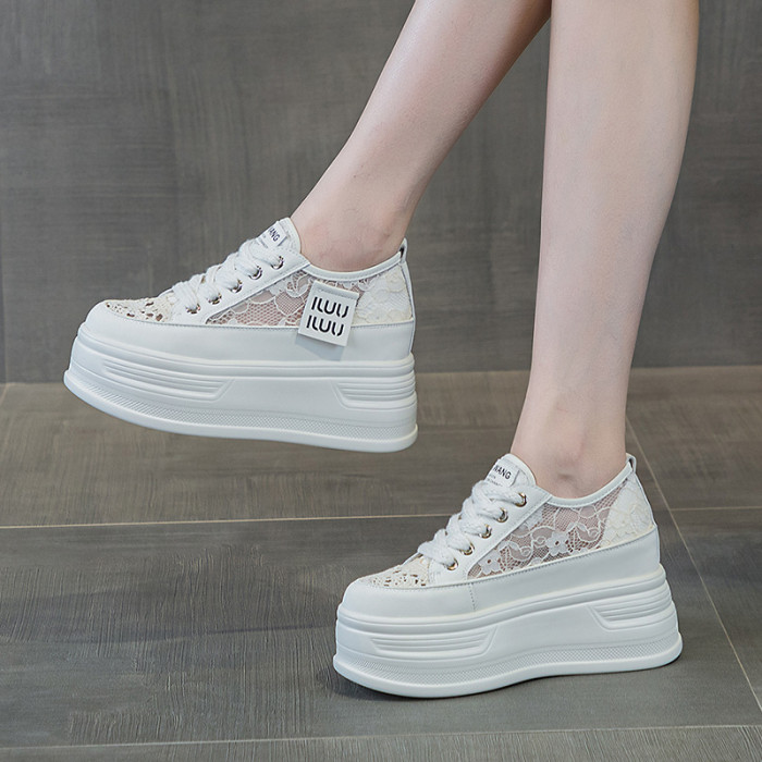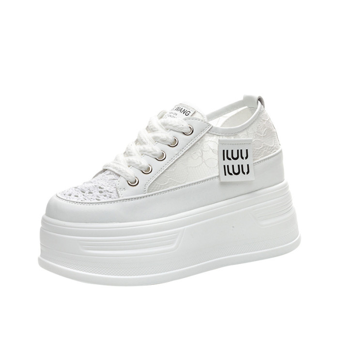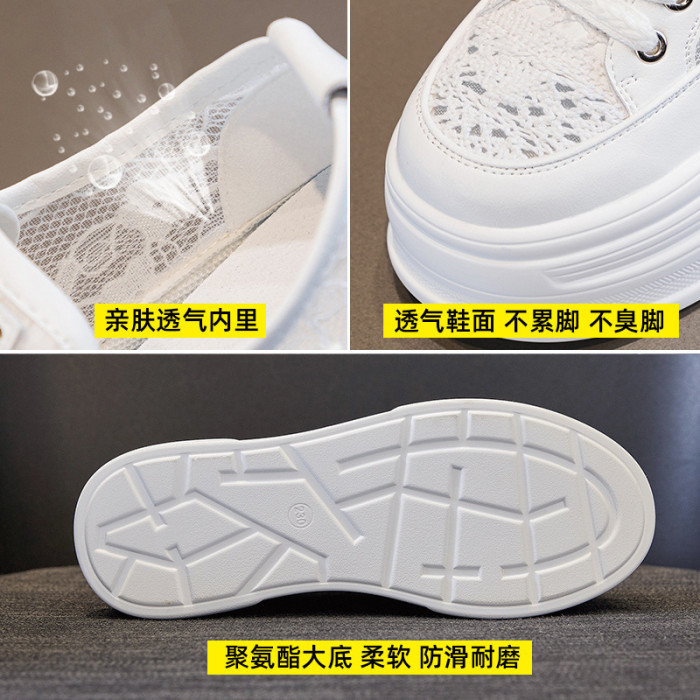 2025新款厚底透氣百搭舒適網鞋女小白鞋夏季新款增高蕾絲網鞋女低
