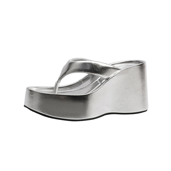 蘇茵茵同款小個子增高厚底人字拖女夏外穿夾腳松糕拖鞋坡跟涼拖女