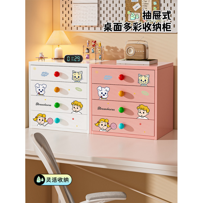 可愛桌面鐵皮小收納櫃子文具化妝品手賬宿舍書桌學生置物架收納盒