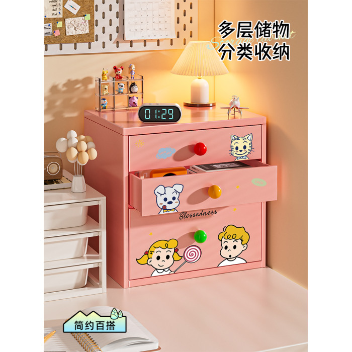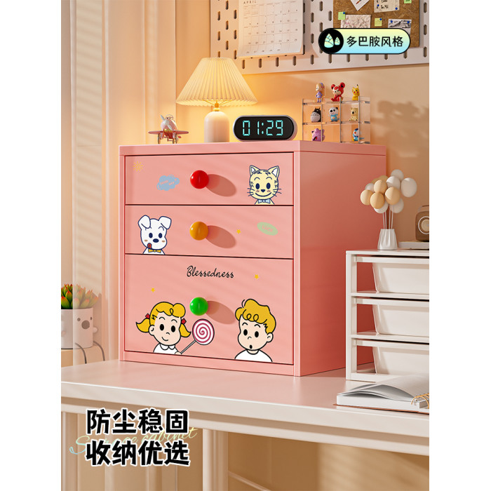 粉色 卡通印花雙抽信磐櫃【帶密碼鎖】