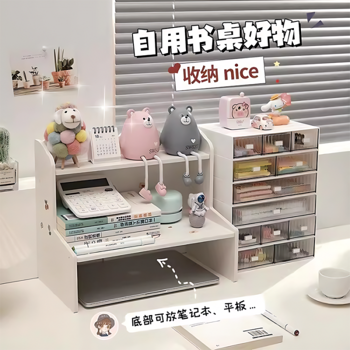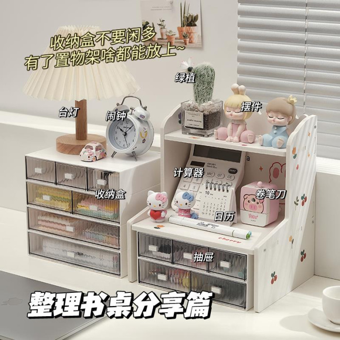 網紅桌面收納盒護膚化妝品箱學生抽屜式櫃宿舍神器書桌上小置物架