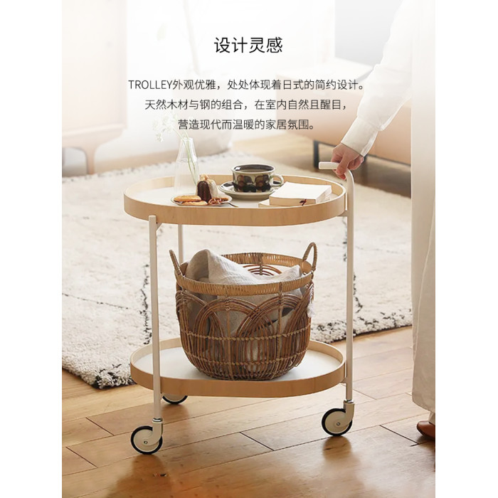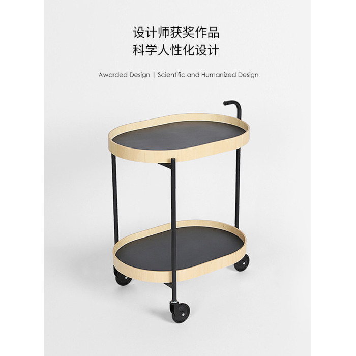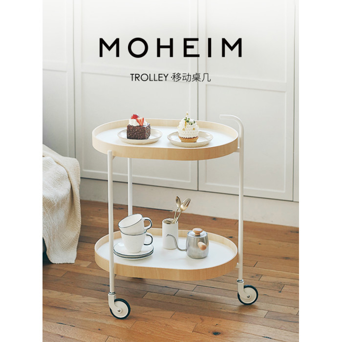 日本Moheim橢圓移動邊幾沙發邊桌小茶幾餐廳酒水車手推車雙層餐車