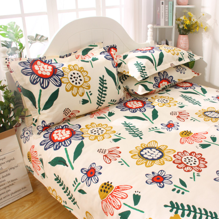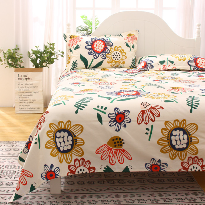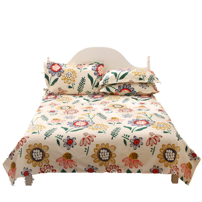 老粗布床單單件三件套純棉全棉加厚加密大花清新田園炕單床笠被單