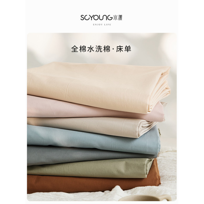 純色全棉水洗棉床單單件100純棉單雙人宿舍兒童被單枕套三件套夏