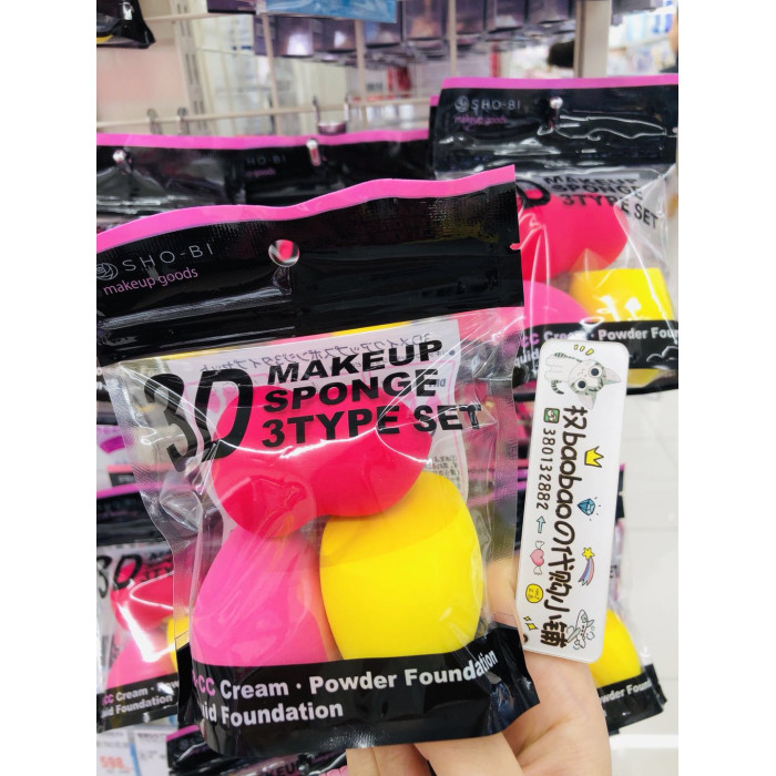 日本本土PROVENCE 3D鑽石美妝蛋水滴葫蘆棉化妝海綿乾溼兩用3個裝