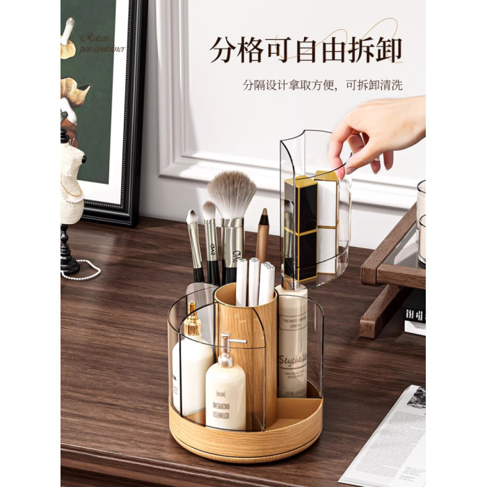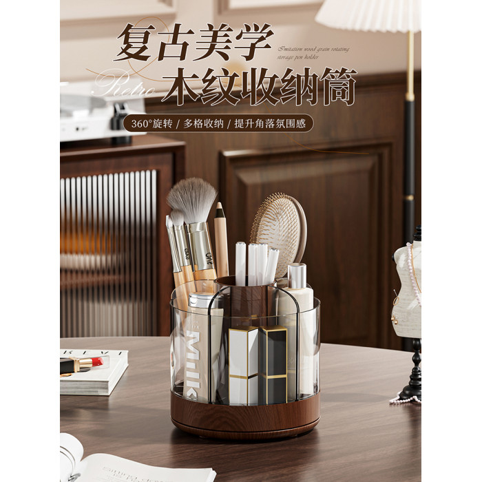 旋轉化妝刷收納筒裝梳妝台桌面眉筆口紅品刷子桶高級感眼影刷桶盒