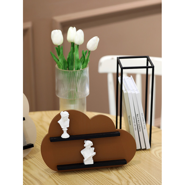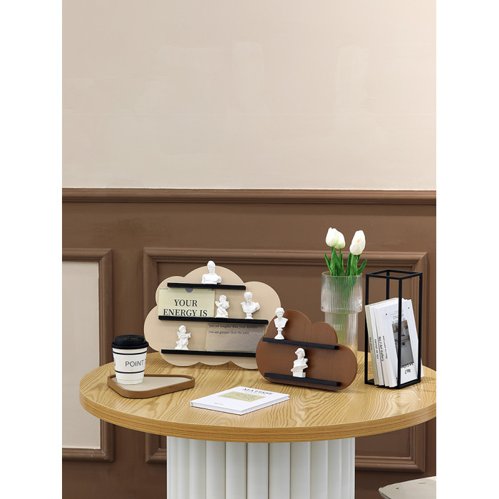 創意雲朵造型置物架 化妝品收納架 桌面襍物架 莫蘭迪木質展示架