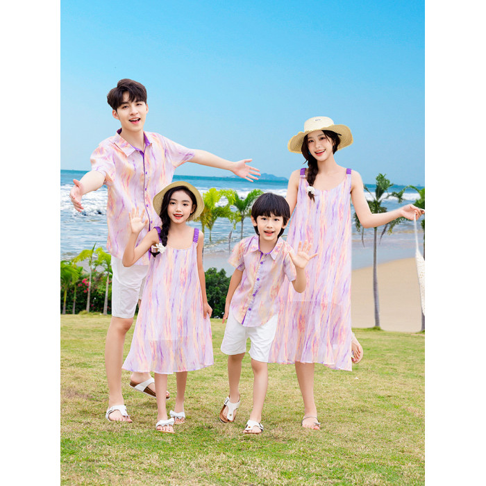 親子裝夏裝一家三口四口POLO海邊度假裝2025新款洋氣母女裝沙灘裙