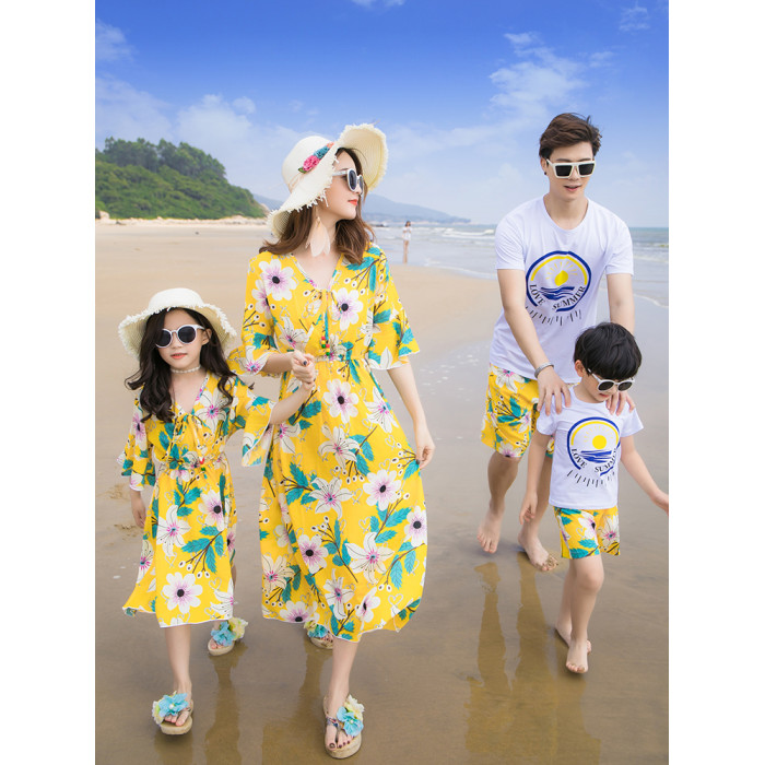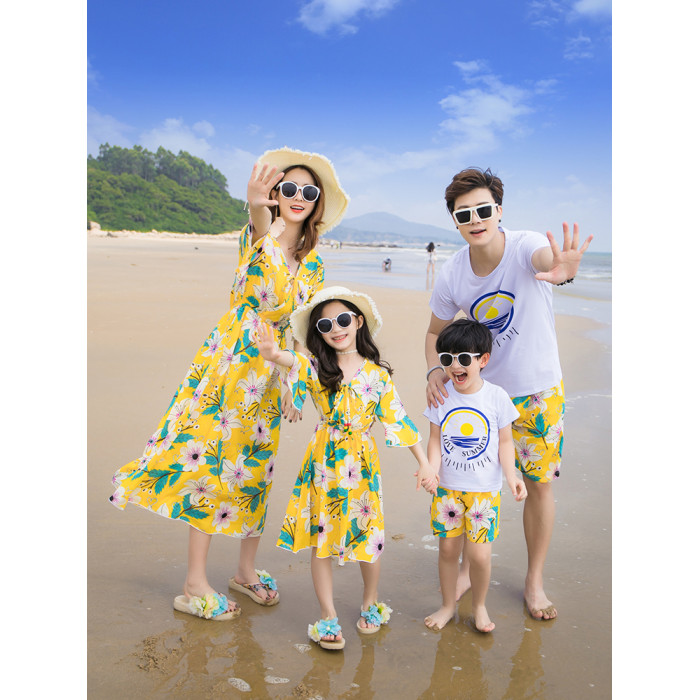 三亞海邊沙灘親子裝夏裝2025新款潮一家三口四口洋氣母女裝連衣裙